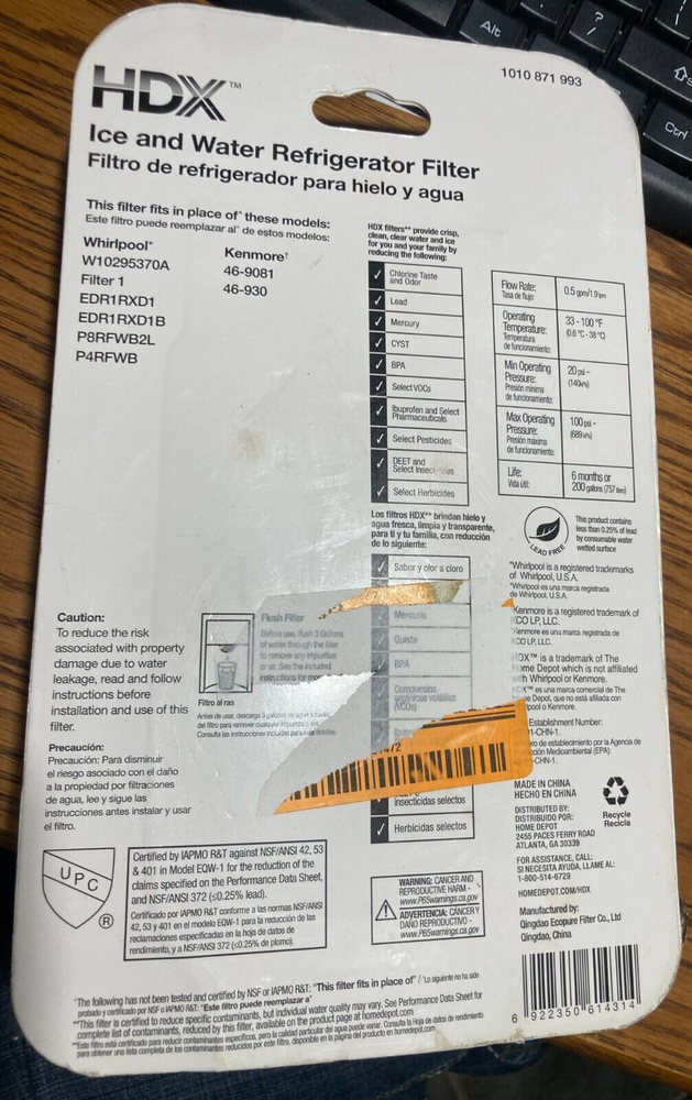 Type:Refrigerator FilterCompatible Model:Whirlpool Model Filter 1UPC:6922350614314Model:EQW-1Number in Pack:2Brand:HDXgtin13:6922350614314Manufacturer Part Number:1010 871 993