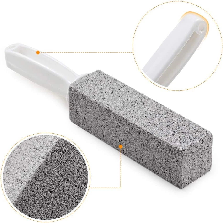 [5X CLEANING IMPROVEMENT] - Efficiency, easy and effective toilet bowl cleaning. This new pumice cleaning stone brings a 5X cleaning improvement to make it easier for you to remove the stubborn stains, hard water rings and other dirt, an efficiency cleaning tool for toilet bowl, grilling rack, pool tile, meeting your various needs. [HIGH QUALITY MATERIAL] - This toiler bowl cleaning tool is built with natural pumice stone which features non-toxic, odorless and BPA free, no more pungent chemical cleanser. The pumice cleaning stone is totally safe and friendly for human beings, pets, plants and water, and it never leave scratches on the surface of the ceramic tile and metal. [ERGONOMIC HANDLE ]- The handle of the pumice cleaning stone is made of superior PP material and meets ergonomics to fit most people’s hand perfectly, it helps to increase grip and prevent accident slipping to make your toilet cleaning safer while the end of the handle with hanging hole to make it easy to store. [WIDELY APPLICATION] - Creating a cleaning environment for the whole family and now having a positive attitude towards your lifestyle, our toilet bowl pumice cleaning stone is wide used for cleaning toilet, swimming pool, kitchen sink, ground trough. Great cleaning tool for home, dorm room, office building.Remember: please wet it before using it. [WHAT YOU GET] - Package includes 2 pack toilet bowl pumice cleaning stone in dimension of 9.25”x1.38”. We’re devoted to provide high quality and practical household accessories to ease your housework, 30 days money back, 1 year warranty, feel free to contact us if there is any issue with our pumice cleaning stone. Product Description Perfect for Treating Stubborn Stains Our cleaning pumice is perfect for treating stubborn stains on a variety of surfaces. It gently removes calcium deposits, scale and hard water rings from toilets, sinks, bathroom tile and ceramic surfaces without causing scratches. On top of that, it effectively removes rust and grease from grills and ovens. Trust me two pumice stones can make your toilet look new in minutes, so why spend money on a new toilet? How to use it? 1、Note: Wet it before use! 2、Keep the toilet surface moist. 3、Use it on a small scale first.Rub gently, not too hard. 4、Make sure it's okay to use it on a wide scale. 5、Rinse with water. 6、Store the stone until it is completely. Efficiently solves toilet rims and hard water stains Gives you a sparkling bathtub The perfect tool for cleaning hard water stains in swimming pools Remove grease and carbon ABOUT THE MATERIAL the pumice brush is made of fine material with strong cleaning ability and is gentle on the surface of the toilet. It can be sharpened into different shapes for easy cleaning of narrow edges and corners of different shapes. After cleaning, just rinse with water, pumice will not be left on the surface.