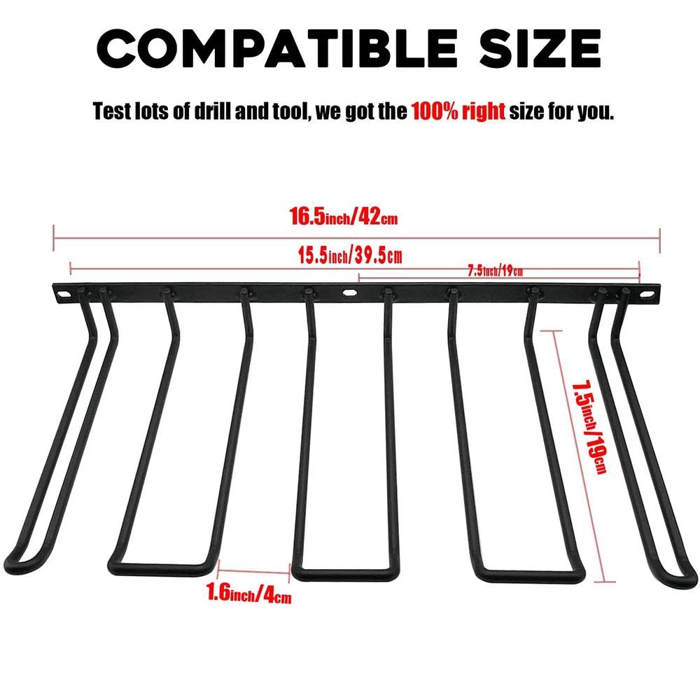 2 Pack Drill Holder, Power Tool Organizer Wall Mount, 80lb Heavy Duty Bearing Capacity Garage Storage, 4 Cordless Metal Shelf, Utility Storage Rack for Dewalt Cordless Tools Father Day Gifts 6mm manual welding technology Ultra Sturdy: Made by 6mm manual welding technology. Up to hold 80Lb that we had test, even you hold 4 sledgehammer. Installation Easy: Install finished within 5 minutes. Packing with plastic anchor and screw kit, Just marker the hole and mount the organizer to concrete wall or pegboard or wood wall. Save Space: This multifunctional drill holder rack transforms spare space into a versatile power tool storage organizer that keeps your usual tools organized and within arm’s reach. About the holder material: Made of 100% high quality metal. About the rack applicable: Warehouse/Workshop/Garage/Workbench Special Feature: (1) heavy duty (2) 30° anti-slip design (3) easy install (4) save space Mounting Type: (1) concrete wall (2) pegboard (3) wood wall The Drill Holder Size Whole size: 16.5inch/42cm * 7.5inch/19cm The holder distance is 1.6inch/4cm The distance between the first hole and the middle hole is 7.5inch/19cm The distance between the first hole and the last hole is 15.5 inches/39.5 cm. Shipping We offer FREE shipping on all orders! We ship within Three business days of payment, usually sooner. We use a selection of shipping services such as UPS, FedEx, USPS etc. We only ship to the lower 48 states, no APO/FPO addresses or PO Boxes allowed. Local pickups and combined shipping options are not provided at this time. Return You can return a product for up to 30 days from the date you purchased it. Any product you return must be in the same condition you received it and in the original packaging. Please keep the receipt. Payment We accept payment by any of the following methods: PayPal Please pay as soon as possible after winning an auction, as that will allow us to post your item to you sooner! Feedback Customer satisfaction is very important to us. If you have any problem with your order, please contact us and we will do our best to make you satisfied. Contact Us If you have any queries, please contact us via ebay. We usually respond within 24 hours on weekdays. Please visit our eBay store to check out other items for sale! Thank you for shopping at our store.