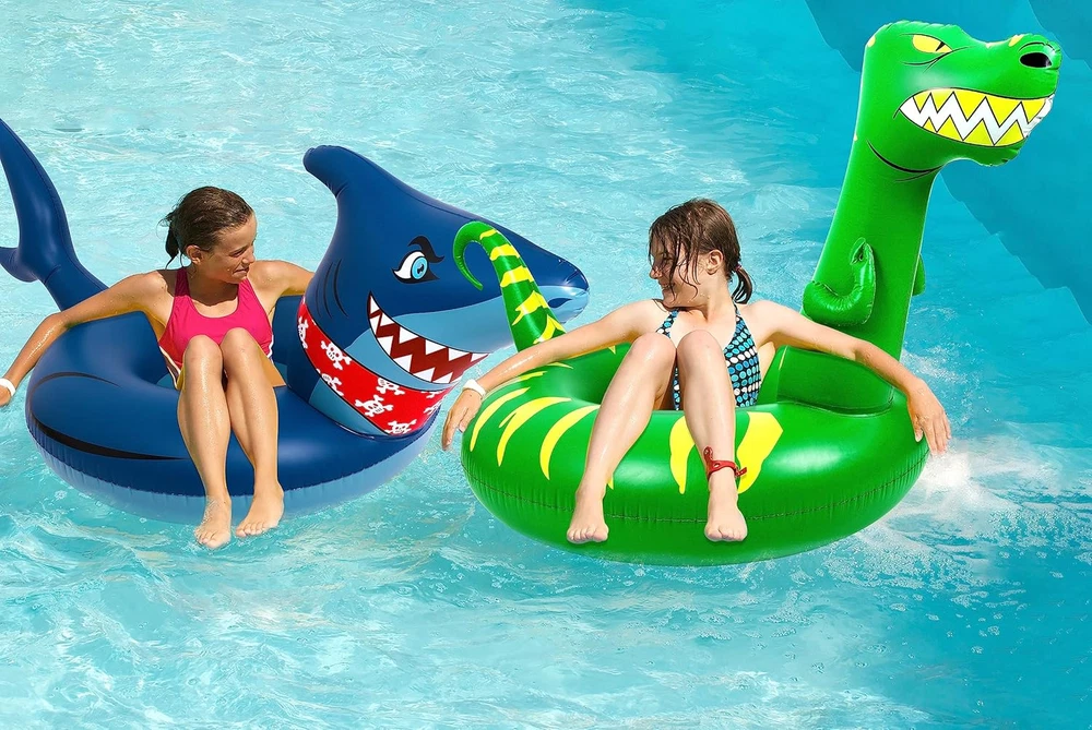 2-Pack Inflatable Dinosaur & Shark Pool Floats for Kids and Adults
