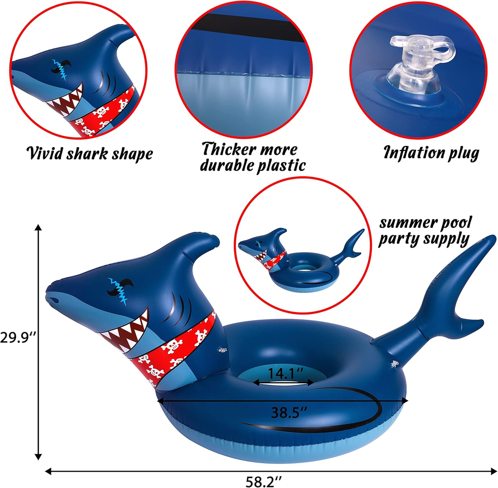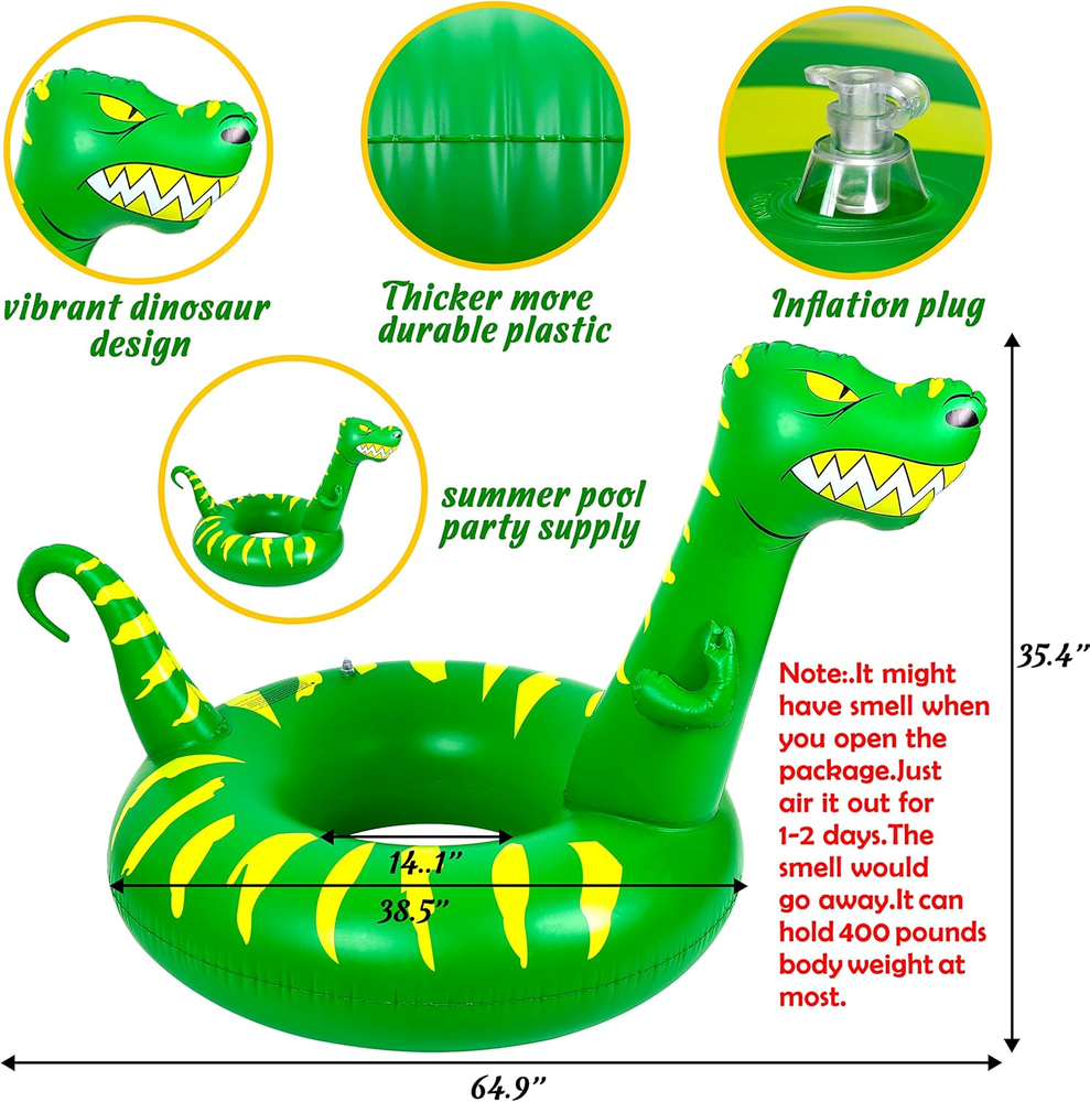 2PCS Pool Floats for Kids Adults Inflatable Dinosaur Shark Swimming Floaties Rings Water Party Supplies 2pcs pool floats - You will get 1 dinosaur pool float and 1 shark pool float.A great choice for your summer pool party with kids ! Size - The dinosaur inflatable inner tube size 14.1” ,the inflatable outer tube size 38.5”.The inflated dimension:58.2" x 38.5" x 14.1".The shark inflatable inner tube size 13.97” ,the inflatable outer tube size 38.5”.The inflated dimension:64.9" x 38.5" x 14.1 ". Easy to inflate -You can inflate with air pump or compressor(not included).Come with repair patches for the accidental air leakage.Enjoy your pool party with this pool floats. Note - It might have smell when you open the package.Just air it out for 1-2 days.The smell would go away.It can hold 400 pounds body weight at most. Multiple use - Good idea for birthday getaway,gifts!Suitable for any themed pool party,like dinosaur party,shark party,birthday party,swim pool party,beach party,etc.Dinosaur pool float and shark pool float will be eye-catching in your party! Product Description Part Number pool float set Product Dimensions 58.2"L x 38.5"W Item Dimensions LxWxH 58.2 x 38.5 x 0.04 inches Color Deep Blue, Yellow, Green Material Plastic Package Weight 1.15 Kilograms Item Weight 1.15 Kilograms Age Range (Description) Over 13 years old Size Large Weight Limit 400 Pounds Item Package Dimensions L x W x H 10.51 x 9.37 x 3.43 inches 9.37 inches x 10.51 inches x 3.43 inches. Weight: 1.15 kg Shipping from the USA All of our products are shipped from the USA, ensuring quick delivery to your destination. Payment We offer the following payment methods: PayPal, credit card, bank transfer, and eBay's secure payment system. Free Shipping & Free Returns Shipping within the USA is FREE. Additionally, any return is absolutely free for you. Risk-Free Purchase You have the option to return an item within 30 days without any justification. We cover the return shipping costs! Fast Shipping We ship immediately upon receipt of payment. Generally, the package is delivered within 2-3 days in the USA. If it takes longer, we will contact you. Quality and Costs Made in Europe, USA, China No customs fees or additional charges Total satisfaction guarantee Invoice with declared VAT available upon request in .pdf format Feedback Your feedback is very important to us. After you pay for your purchase, you will automatically receive positive feedback from us.
