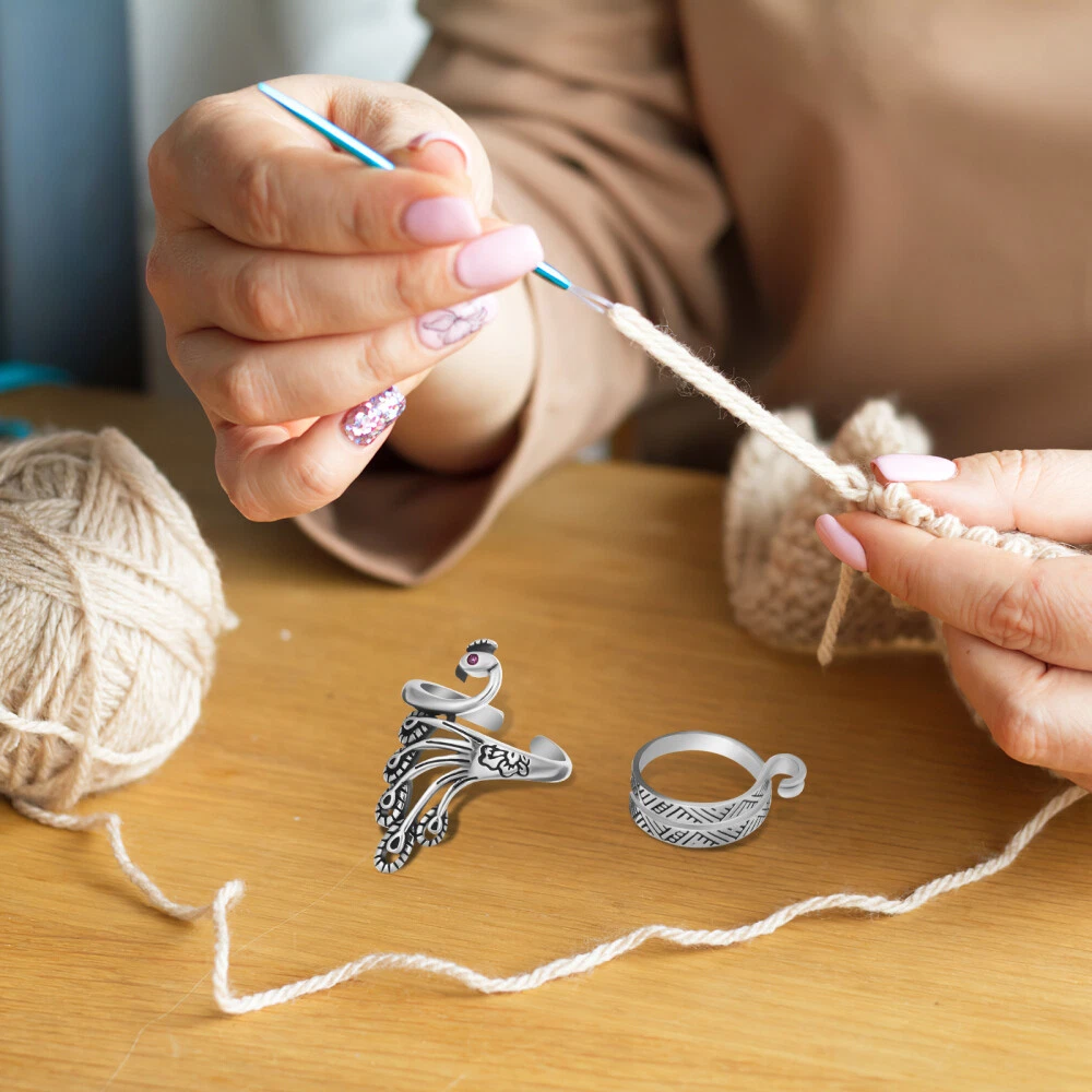 2-Pack Knitting Ring Crochet Finger Thimble with Lead Coil Hook