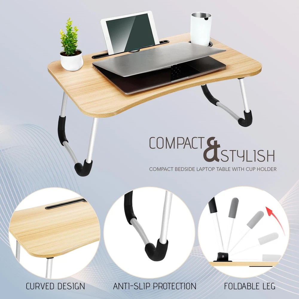 Enhance your productivity and comfort with our versatile lap desk, the perfect solution for working, studying, or relaxing in any space. Crafted with high-quality MDF and sturdy metal legs, this compact yet durable desk offers unparalleled stability for all your tasks. Its lightweight, foldable design ensures effortless portability and easy storage, making it ideal for small spaces or on-the-go use. With dimensions of 23.6 inches wide, 15.7 inches deep, and 11 inches high, the desk provides ample surface area for your laptop, , and other essentials. Integrated device slots securely hold your and , allowing for seamless multitasking and organization. Its ergonomic height minimizes strain on your neck and back, making it a practical and comfortable choice for prolonged use. This modern lap desk blends style and functionality, featuring a sleek design that complements any interior. Anti-slip rubber pads on the legs ensure stability while protecting surfaces from scratches. Whether you’re working from bed, enjoying breakfast on the couch, or using it as a portable study desk, this lap desk is designed to adapt to your needs. Upgrade your daily routine with a lap desk that combines convenience, durability, and style. Compact & Spacious Design: This lap desk measures 23.6 x 15.7 inches, providing ample space for laptops, books, and other essentials. The thoughtfully designed size offers a compact yet efficient workspace for various activities. Foldable & Portable: The foldable metal legs make storage and transportation a breeze. Its lightweight design allows you to carry it effortlessly, perfect for use in bedrooms, dorms, or living rooms. Ergonomic Height: With a height of 11 inches, this desk promotes proper posture by reducing neck and back strain. It’s ideal for long sessions of working, studying, or watching shows comfortably. Versatile Utility: From a laptop stand to a breakfast tray, this lap desk supports a variety of uses. The built-in device slots keep your gadgets upright and organized, enhancing multitasking capabilities. Durable & Stylish Build: Constructed with high-quality MDF and sturdy metal legs, this lap desk is designed to last. Its sleek, modern design fits effortlessly into any home decor.