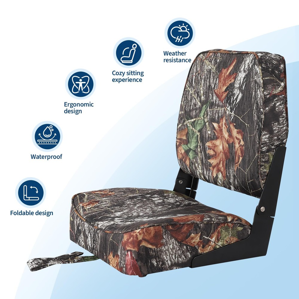 About this item 【Enhanced Comfort】 Our boat seat features thick seat and back cushions designed to perfectly fit your body curve, providing excellent support and helping to alleviate back pain. 【High-Quality Materials】 Made with weather-resistant and waterproof PVC material, this boat seat is durable and can withstand the elements. The tight stitching and abrasion resistance ensure long-lasting use. 【Superior Durability and Stability】 The heavy-duty rust-proof aluminum alloy hinges and stable injection-molded plastic frame provide excellent durability and stability. This seat can stand up to the shock of great waves. 【Convenient Folding Design】 The aluminum hinge design allows for easy folding and storage. Simply flip up the backrest for a comfortable seat, and fold it down to save space when not in use. 【Easy Installation】 Detailed illustrated instructions are included for quick and easy assembly. The 5" x 5" bolt hole pattern allows for easy mounting to any standard 4-bolt swivel. Product Description Wide Seat Design The seat is filled with thickened ultra-high-density sponge, which has good rebound and can perfectly fit the body curve. The wide seat design provides comfortable support and can reduce the fatigue caused by sitting for long periods of time. Easy to Fold and Store Our boat seat is designed with a fold-down feature, making it perfect for saving space on boat. The premium metal hinges allow for easy snapping down, and the fixing strap ensures the backrest stays in place securely. Low Back Boat Seat Our low back boat seats are expertly designed with professional ergonomics, conforming perfectly to your body's contours. They provide excellent lumbar support, protecting your spine and reducing fatigue during long hours of sitting. Whether you're on a fishing boat, sightseeing boat, speedboat, or canoe, our boat seats are the ideal choice. They're armrest-free, allowing for easy casting and fishing without any obstructions. Top About this item Similar Product information Reviews Payment Delivery details Terms of sales About us Contact us Payment We accept payment either via PayPal or any of the following credit cards; Visa, MasterCard, Discover, and American Express. Delivery details 1. We will delivery out at the handing time when we receive the payment. 2. The delivery time is 3-5 business days to US by usually time.The parcel maybe delay 1-2day of the weekend.Due to the bad weather,Holidays,Hot Season ect.the parcel maybe delay,If you have any problems,mssage us,we will try our best to solve it. 3. We ship to your eBay address. Please make sure your eBay address is correct before you pay. 4. If you want to change the shipping address,message us before our send out. Terms of sales If you are not satisfied with the item for any reason, please do not quick to leave negative/neutral feedback even open request and case without any communication with us. We devote ourselves making EVERY CUSTOMER in 100% Satisfactory and resolve any problem. Thank you for your understanding and recognition,we are always leave positive feedback to all our customers. About Reply: All replies will be sent to your email box, if you do not get response within 24 hours (Sat. & Sun. excluded) please check your eBay My Messages in case that our emails will be filtered automatically by your settings. About us automobilee-01 is a brand new store but we are one of North America’s top online suppliers of specialized, high-quality aftermarket online retailers and suppliers, committed to developing new markets. We primarily offers tool sets, auto parts, home goods, etc..With over 20 years of product selection and manufacturing experience, we delivers unparalleled quality, value, service and satisfaction. Our highly-trained, professional staff offer in-depth knowledge and personalized assistance for customers worldwide. Providing our customers with a simple, hassle-free experience with best-in-class customer service is more than a goal. Contact us Any problem please rest assure to contact us by eBay message first. We will reply you as soon as we can. We will deal with it within 24hs on working days. Type Boat Seats Brand Unbranded Color Camouflage Material PVC Department Unisex Adults MPN Does not apply Assembly Status Fully Assembled Item Length 15.5 in Item Width 16.5 in Item Height 23.2 in Vehicle Service Type Boat Number 2 Pack Specifications Low Back Seating Capacity 2