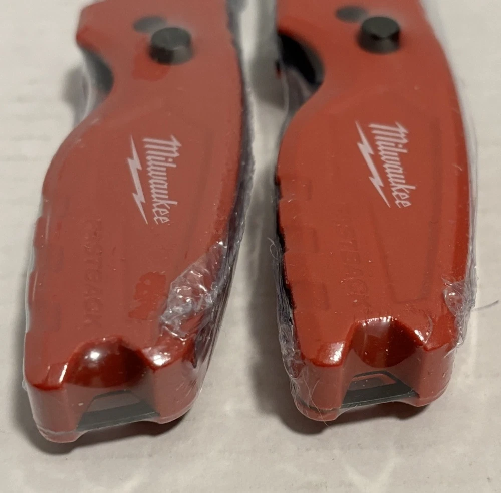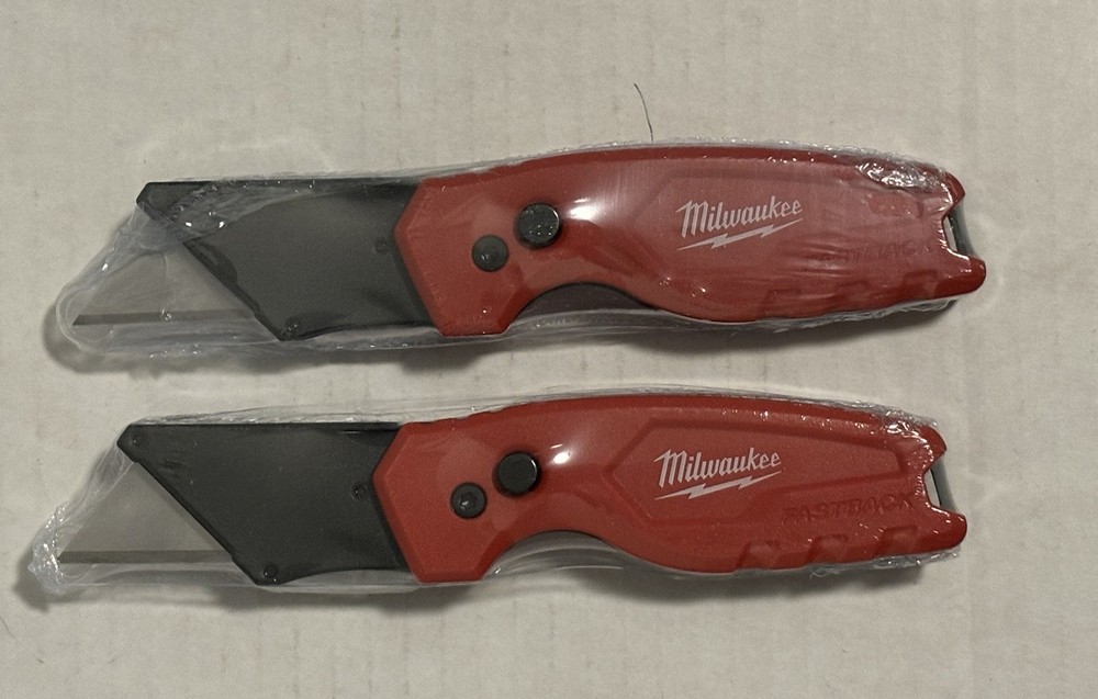 THIS IS IN STOCK - READY TO SHIP FREE SHIPPING TO ALL 52 STATES INCLUDING HAWAII & PUERTO RICO BRAND NEW NEVER USED MINT CONDITION WRAPPED IN HEAT SHRINK TO KEEP PROTECTED, NEW & UNUSED GENUINE MILWAUKEE MODEL # 48-22-1500 PURCHASE INCLUDES: TWO (2) GENUINE MILWAUKEE 48-22-1500 FASTBACK FOLDING UTILITY KNIVES WITH TWO (2) GENERAL PURPOSE BLADES BRAND NEW NEVER USED NOT REFURBISHED PLEASE MESSAGE US DIRECTLY IF YOU HAVE ANY QUESTIONS REGARDING THESE ITEMS PRIOR TO PURCHASING. TO SEE OUR OTHER BRAND NEW ITEMS FOR PURCHASE, PLEASE VISIT OUR STORE, OR CLICK ON SELLERS OTHER ITEMS. FOLLOW US TO SEE OUR UPCOMING LISTINGS OF NEW ITEMS. MANUFACTURE DETAILS: The Milwaukee FASTBACK Compact Folding Utility Knife features a press and flip mechanism for easy, 1-handed opening. The Milwaukee utility knife allows users to make quick, tool-free blade changes for maximum jobsite efficiency with a metal extension over the button to prevent accidental blade removal. The press and flip open utility knifes compact size allows for easy storing while a durable wire belt clip reduces pocket tearing. The small utility knife has a blade holder designed for scoring and includes a lanyard hole for convenient tethering. Press and flip opening Quick change Compact size Durable wire belt clip reduces pocket tearing Lanyard hole Blade holder designed for scoring Metal extension to prevent accidental blade removal. Purchase Includes: Two (2) Brand New Milwaukee 48-22-1500 FASTBACK compact folding utility knives with Two (2) general purpose blades TERMS and POLICIES SHIPPING….. No returns for items covered by manufacturer warranty. Please contact manufacturer warranty. REFUNDS….. We offer 100% refund for shipping damage, item NOT as described and/or different item. For other refunds, total refund will be reduced by 20% restocking fee and shipping fees (both ways). PICKUP….. Local pickup is available for all listed items in SEWELL, NJ 08080 If you are interested, please message us and we can arrange a time for you to pick up the listed items. FEEDBACK….. We leave feedback immediately after it is left for us. If you have any problem with the item or our service, please don’t be hasty in writing a negative review or feedback. We welcome you to contact us right away, our service team will respond within 24 hours, we will try our best to help solve the issue. Thank You for giving us a chance to solve the issue or improve our service. INTERNATIONAL ORDERS….. We don’t accept International orders ADDITIONAL SHIPPING….. If you need faster shipping term, insurance and/or signature, please contact us before making a purchase. SHIPPING SERVICES….. We will determine the shipping services (USPS, UPS or FEDEX) used to deliver item to your destination. MILITARY / APOADDRESS….. We do NOT ship to any military address. TURNAROUND TIME….. 99% of orders ship 1 - 3 business days after your payment is received. If your payment is received on Friday, it will be shipped on Monday (except holidays).