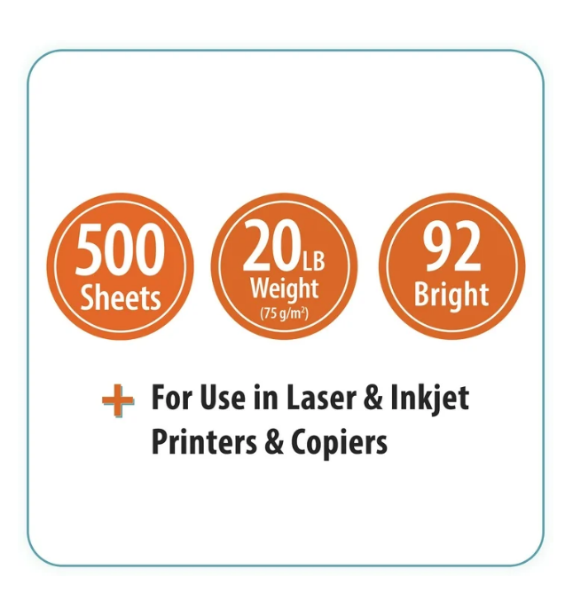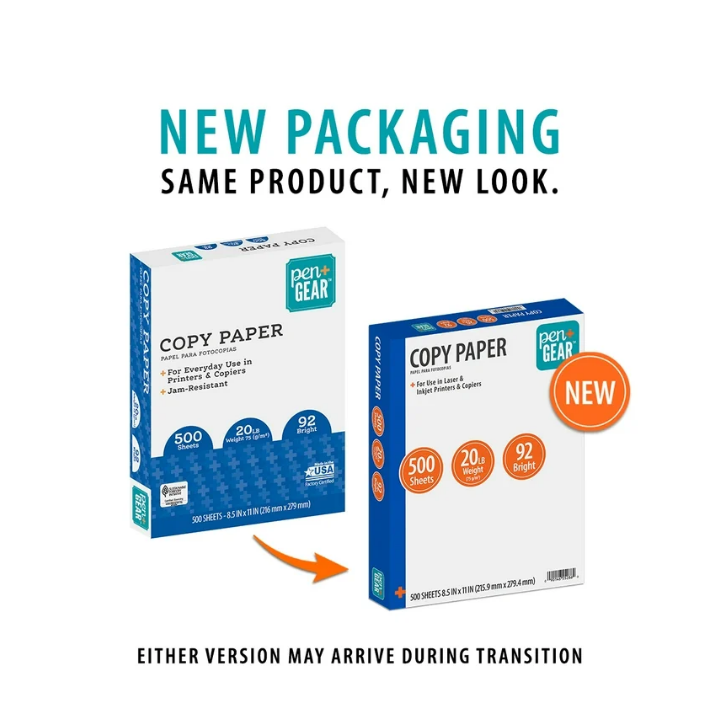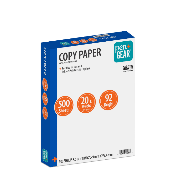 (2 pack) Pen+Gear Copy Paper, 8.5" x 11", 20 lb, White, 500 Sheets et creative with Pen+Gear Copy Paper, great for home, office, or school. This easy-to-use printer paper lets you make your designs in rich black and color ink. The pack has 500 sheets that work with laser and inkjet printers and copiers, giving you great prints. It's perfect for printing handouts, making signs, or even starting a craft project. This white paper can be used for many things. Be sure to check out other Pen+Gear products such as pens, markers, desk organizers, file folders, highlighters, sticky notes, and more for all your school and office supply needs. Choose Pen+Gear Copy Paper today and make your next project a success! Pen+Gear Copy Paper, 8.5" x 11", 20 lb, White, 500 Sheets Perfect choice for use at home, office, or school Works with laser and inkjet printers and copiers 500 20 lb sheets in 92 bright white Pair with other Pen+Gear products