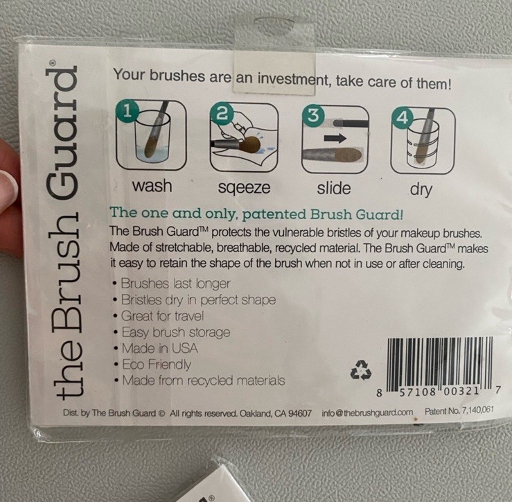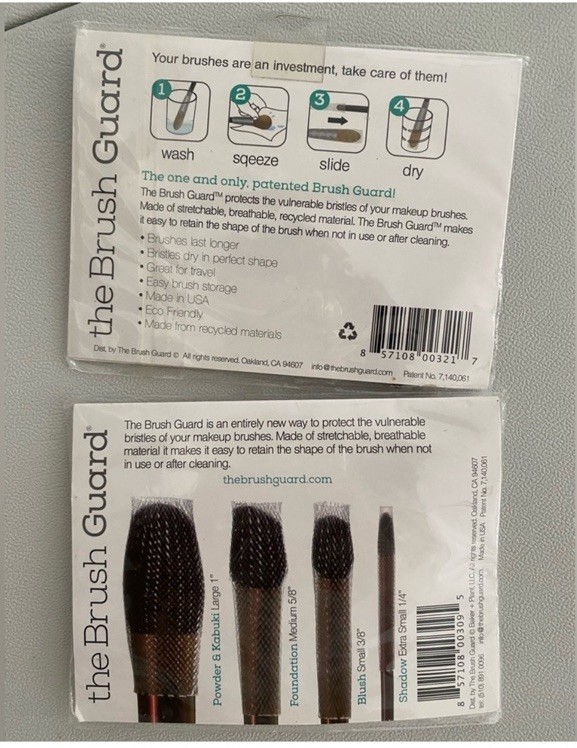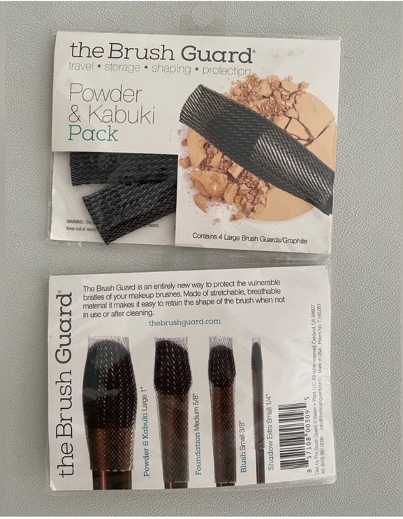 The Brush Guard set includes Powder & Kabuki and Cheek & Blush packs. Ideal for travel and storage. travel • storage • shaping • protection The Brush Guard - Powder & Kabuki Pack-4 Large Brush Guards/Clear. Check pictures All new with tag The Brush Guard Netting Brush Guard 2 Pack Powder & Kabuki & Cheek & Blush NWT