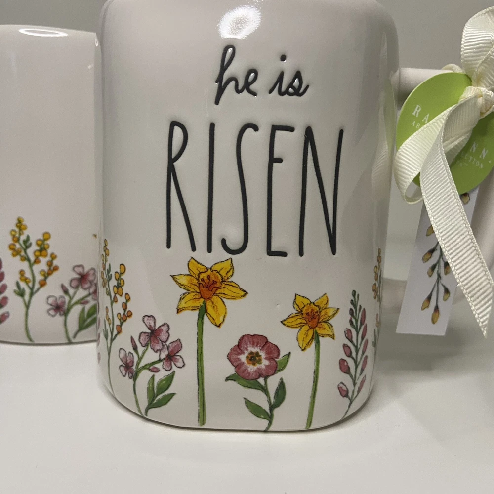 Thanks for visiting my shop! Buyer will receive a pair of Rae Dunn Easter “He is risen” floral mugs for this price. These items are in brand new condition.