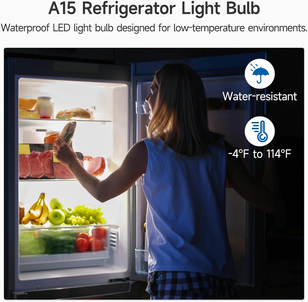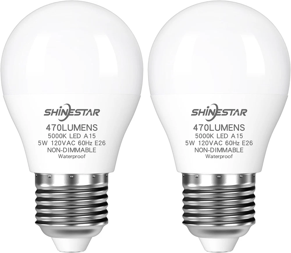 2-Pack Refrigerator Light Bulb, 5 Watt (40W Equivalent), Waterproof A15 LED Bulb