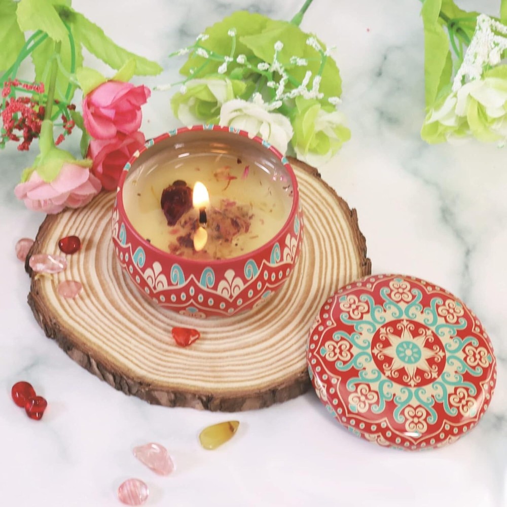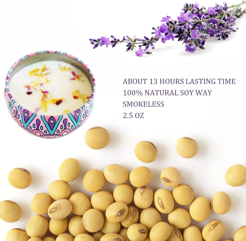 2 Pack 26 Hours Lasting Time: Packed with 2 tins, 2.5oz per jar, the small aromatherapy candles with 13 hours burning time, total with 26 hours lasting hours. Natural Soy Wax: Made of natural soy wax, the floral scented mini candles are toxic-free and safe, soothe the mood and release the stress, providing a relaxed atmosphere for you. The small candles can be used for yoga, bathing, creating a comfortable atmosphere. Candles Gift for Women: Come with a beautiful box, our mini spa candle set is an ideal gift for women and girls on birthday, Valentines Day, Mothers Day, Thanksgiving and Christmas, baby shower games gifts for winners. Portable Travel Tins: Only 2.5 oz each travel candle and is light enough to fit easily in your handbag or luggage. A familiar scent to help you find familiarity in unfamiliar places and fall asleep quickly. The scented spa candles are one of the items needed to carry on a business trip. Popular Fragrances: Includes 2 popular fragrances wolfberry orange and lavender, this aromatherapy candle gift set adds the fragrance of flowers to your life. If there is any problem, just contact us, we will try our best to resolve it.