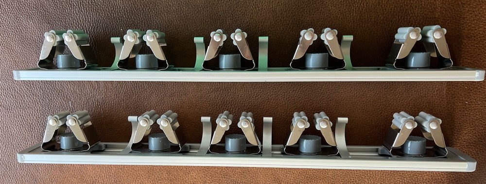Two Wall Mounted Rails with 4 Broom / Mop Sliding Holders and 4 hooks per rail Screws and wall plugs are in original sealed packaging PLEASE NOTE: The item you see is the EXACT item you are receiving. No stock photos. The pictures show the best description of the condition of the item.