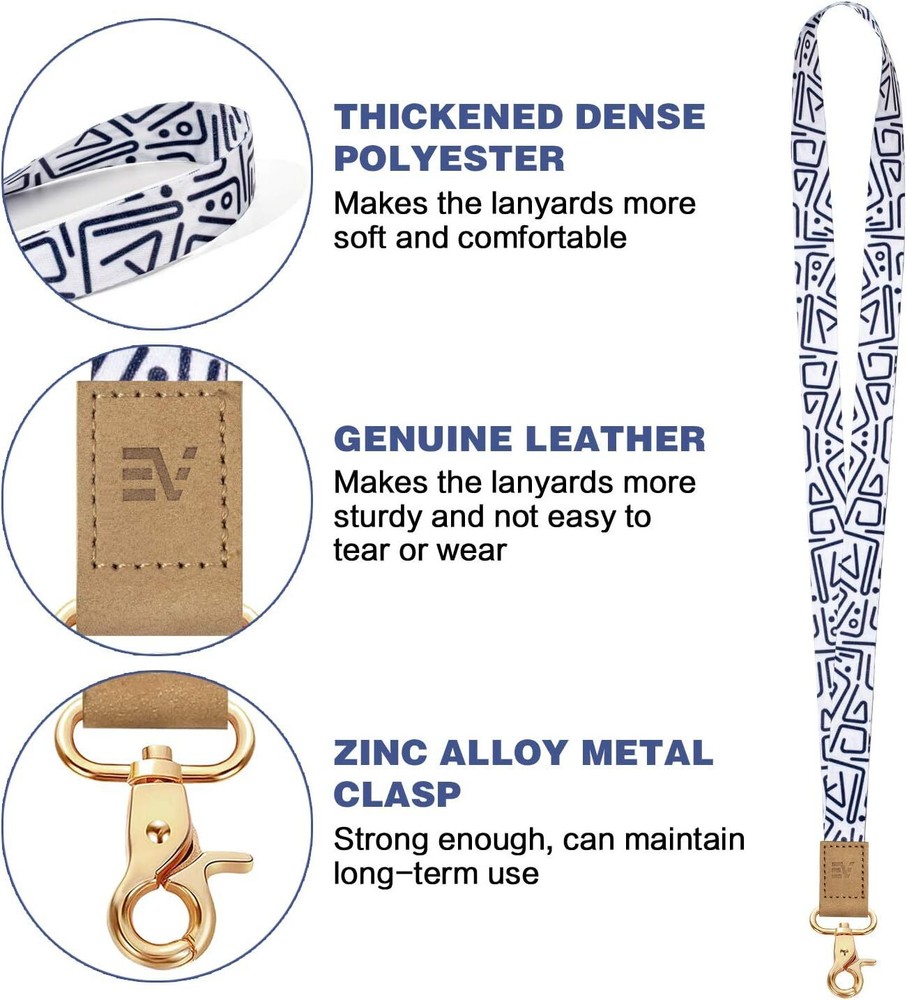 ENJOY THE FREEDOM OF YOUR ON-THE-GO LIFESTYLE: These wrist and neck keychain lanyards are perfect for those who prefer a minimalist lifestyle. Ideal for keeping just the essentials, eliminating the need to carry extra items when you go out, bringing more convenience to your daily life. VARIOUS FASHIONABLE PATTERN DESIGNS: Available in a variety of colors and patterns, regularly updated to help you find the coolest badge lanyard, wristlet keychain, or neck lanyard to match your style. HIGH QUALITY MATERIAL: Made from thickened dense polyester with washable and colorfast printed patterns. Genuine leather enhances durability. The zinc alloy metal clasp is strong and designed for long-term use. FLEXIBLE APPLICATION: Suitable for use with keychains, key rings, ID badges, student cards, card wallets, whistles, decorative accessories, cell phones, digital cameras, and more. Pack of 2 lanyards included. Product dimensions: 11.5 x 2.76 x 0.5 inches.