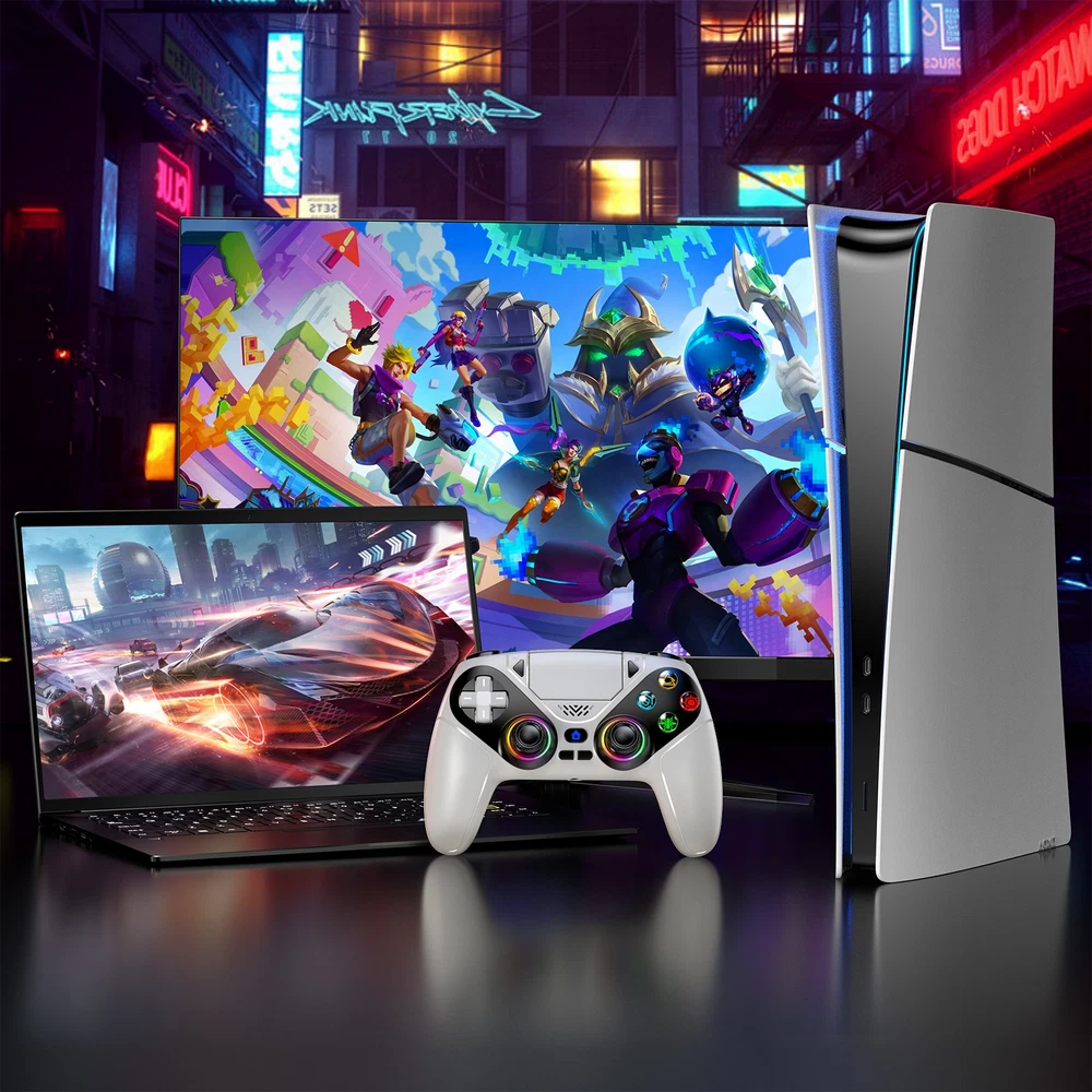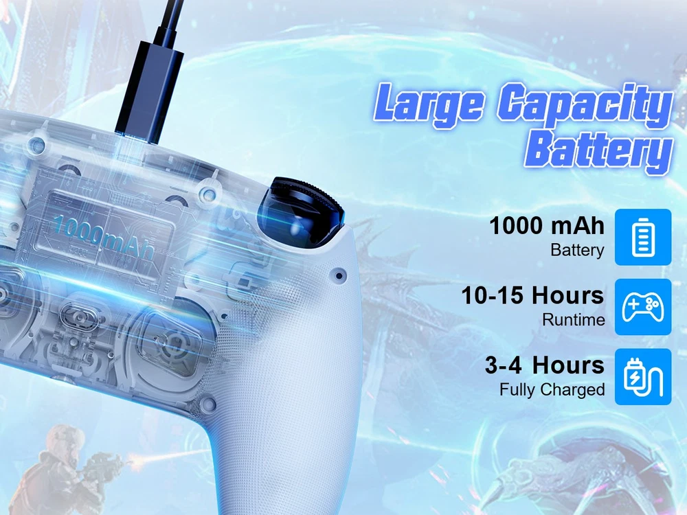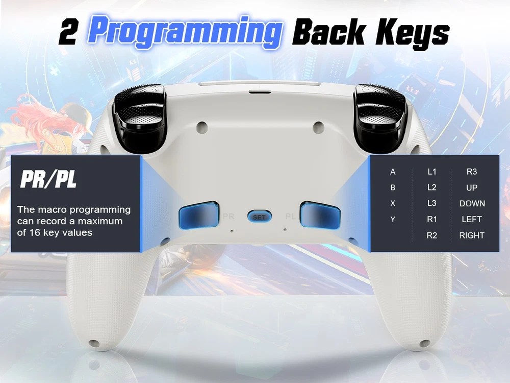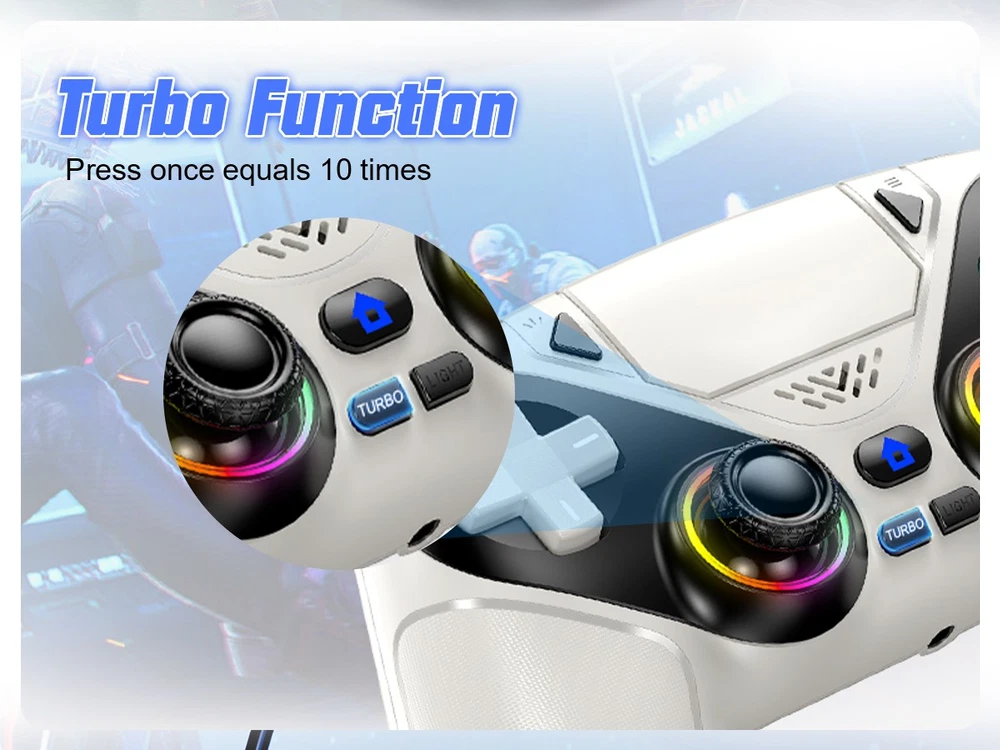 Product Description Product Detail: RGB Lights Wireless Controller For PS5 Connection method: Wireless Compatible with Playstion 5 Pro/Slim/Windows 3D Joystick Somatosensory Dual Motor Vibration Feedback Delicate vibration sensation One-touch Function Sensitive Joystick Voice Controller : Support wired and Bluetooth speaker functions Colorful Lighting Effects Marco Function Turbo Function Large Capacity Battery: 1000mAh Working time: 10-15 runtime fully Charged time : 3-4 Hours Function: Connect to the PS5 console through the handle to control the corresponding PS5 games; The handle has a built-in 3.5MM headphone jack and supports voice function; Supports dual-point capacitive sensing touchpad; Supports dual-motor vibration function. ✅ Six axis function: A brand new motion sensing technology with built-in three-axis gyroscope and three-axis accelerator can detect all-round dynamic information including Roll (left and right tilt), Pitch (front and back tilt), and Yaw (left and right rotation). In addition to accurately sensing the tilt angle of the handle, it can also capture acceleration information of three-dimensional space X, Y, Z, and 3-axis, and quickly transmit all data to the game system, Players can fully use this innovative motion sensing technology to perform special operations in games. ✅ Headphone port: The 3.5mm TRRS stereo jack can connect headphones and microphones, allowing users to receive and transmit audio simultaneously. ✅ Turbo function settings: Set the function of the function key Turbo, the function keys include (╳, ○, □, △, L1, L2, L3, R1, R2, R3) 1. Press and hold any function key 2. Then press the Turbo key MACRO programming function: 1. Press the SET key for 3 seconds,P indicator light flashing slowly,and the motor vibrates 2. press any function key ↑,↓,←,→,╳, ○, □, △, L1, L2, L3, R1, R2, R3 and record key press and release times (The macro programming can record a maximum of 16 key values) 3. After recording,press ant key of PL/PR,the motor vibrates and the P indicator is always on, the button programming is successful Headphone port: The 3.5mm TRRS stereo jack can connect headphones and microphones, allowing users to receive and transmit audio simultaneously. About Us Payment Shipping Returns Contact Us Welcome to our store! We are a professional worldwide wholesale company. High product quality, reasonable prices, excellent customer service and a reliable credit standing is our tenet.If you like our products, please add my eBay shop to your "My Favorites" list. All the products we are selling include factory warranty , don’t cover items that have been abused, burned and damaged in any form. We accpet payment via PayPal , E-wallet , some Credit Card , Direct Debit and Other specific payment methods. Import duties,taxes and charge are not included in the item's price or shipping cost.These charges are the buyer's responsibility. Please check with your country's customs office to determine what these additional costs will be prior to bidding or buying. Insurance is included in the Shipping & Handling costs paid. Items are generally shipped out in 1-3 business day after your payment has been cleared (Sat. & Sun. excluded.) Orders from the United States Warehouse will be shipped out via USPS or UPS. The shipment usually takes 3-7 business days(Saturday and Sunday excluded), if you need the item urgently, please contact us for detail before purchasing. Local pick up is not available. Orders from China will be shipped via Belgian Post or Post NL.The shipment will take 15-35 working days,please contact us if you didn't get the parcel for a long time. We do not ship to APO, FPO, Alaska, Hawaii and Puerto Rico addresses, and we are unable to ship to PO BOX for this item. Please provide your psychical address. You have 60 days to return it from the date it was received. All returned items must be in the original package and you must provide us with the shipping tracking number,specific reason for the return and your ebay ID. We will refund your full winning bid amount , upon receipt of the item in its original condition and package with all components and accessories included. Dear buyers,we appreciate your business, if you are satisfied with our service , please leave us a Positive feedback and rate the details of the transaction (Detailed Seller Ratings) with a " Pefect Stars ". We aim to provide best services and products in exchange your maximum statifaction. We will do our best to resolve your issue till your satisfaction. O ur working time is: 09:00 AM-18:00 PM(Chinese time from Monday to Saturday) .All emails will be answered within 24 hours except weekends and holidays. About Us Welcome to our store! We are a professional worldwide wholesale company. High product quality, reasonable prices, excellent customer service and a reliable credit standing is our tenet.If you like our products, please add my eBay shop to your "My Favorites" list. All the products we are selling include factory warranty , don’t cover items that have been abused, burned and damaged in any form. Payment We accpet payment via PayPal , E-wallet , some Credit Card , Direct Debit and Other specific payment methods. Import duties,taxes and charge are not included in the item's price or shipping cost.These charges are the buyer's responsibility. Please check with your country's customs office to determine what these additional costs will be prior to bidding or buying. Insurance is included in the Shipping & Handling costs paid. Shipping Items are generally shipped out in 1-3 business day after your payment has been cleared (Sat. & Sun. excluded.) Orders from the United States Warehouse will be shipped out via USPS or UPS. The shipment usually takes 3-7 business days(Saturday and Sunday excluded), if you need the item urgently, please contact us for detail before purchasing. Local pick up is not available. Orders from China will be shipped via Belgian Post or Po