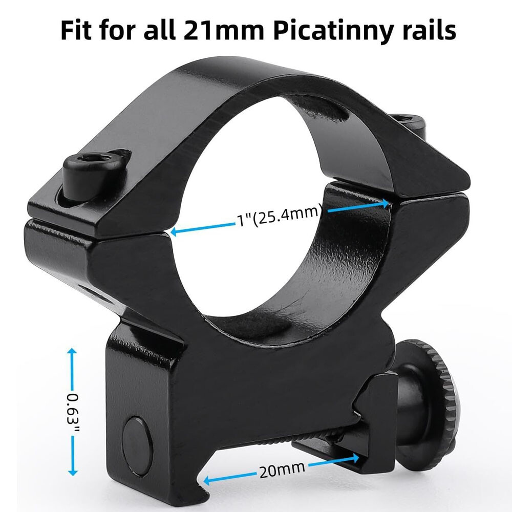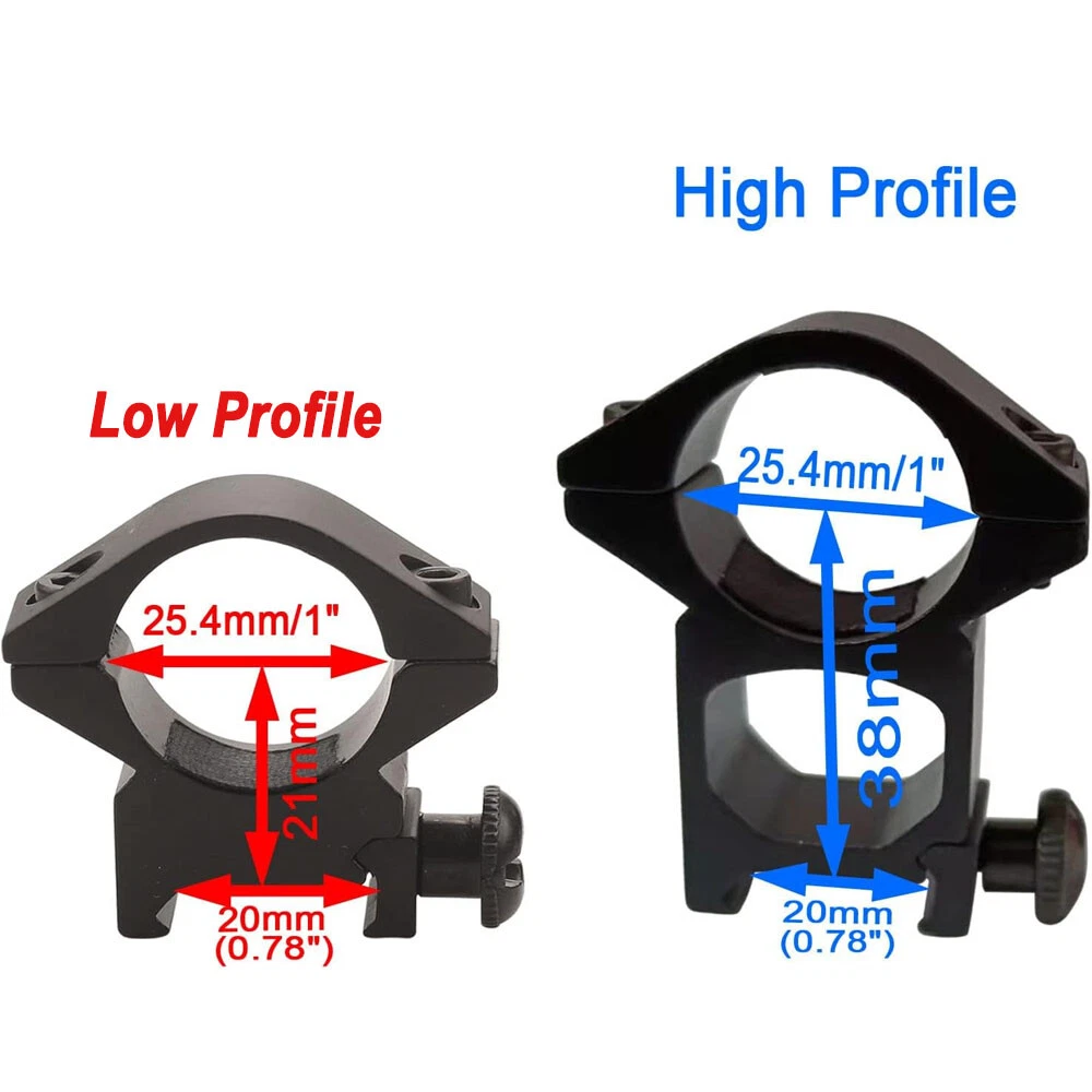 1"/25.4mm 30mm Scope Rings Mount Low/Middle/High Profile to Weaver Dovetail Rail 8.79 USD Free shipping 2Pcs 1" 25.4mm Rifle Scope Rings Mount Low Profile 20mm Picatinny Weaver Rail 9.49 USD Free shipping Scope Barrel Mount 1" 25.4mm & 30mm Ring Adapter with 20mm Weaver Picatinny Rail 7.9 USD Free shipping ACOG 4x32 Red Chevron BDC Rifle Scope Reticle Sight Real Fiber Optics with Mount 72.99 USD Free shipping for Henry .22 Lever Rifle Dovetail to Picatinny Weaver Rail Adapter Scope Mount 10.95 USD Free shipping Hunting 1" Scope Riser Mount fit 20mm Picatinny Rail for Optics Red Dot Sight 8.99 USD Free shipping 25.4/30 mm High Profile Ring Weaver Picatinny Rail QD Quick Release Scope Mount 9.99 USD Free shipping Tactical Holographic Reflex Red Green Dot Sight 4 Type Reticle for 20mm Rails 23.95 USD Free shipping 1 Pair 25.4mm 1" Scope Rings Middle Profile For Rifle 11mm/21mm Rail Mount 9.49 USD Free shipping One Pair of 1" Laser / Scope Ring Mount for 10mm Dovetail Rail - High Profile 8.99 USD Free shipping Quick Release QD 1" / 30mm High Profile Scope Rings Mounts Picatinny Weaver Rail 11.59 USD Free shipping Scope Adapter Rail Mount 22 Crossbow 3/8" Dovetail to 7/8" Weaver /w Stop Pin 10.9 USD Free shipping 1 Pair 30mm Scope Rings 3/8" Dovetail High Profile .22 caliber Riflescope rings 9.49 USD Free shipping 45 Degree Offset 1" Tactical Flashlight Laser Weaver Picatinny Rail Side Mount 8.95 USD Free shipping QD Lever 5 Slot 20mm Weaver Picatinny Rail Mount Riser Quick Detach Scope Base 9.95 USD Free shipping 34mm/1.34 inch Scope Adapter Ring Mount with 20mm Picatinny Weaver Top Rail 14.95 USD Free shipping 1x30mm/1x40mm Red Green Dot Sight Scope Tactical Reflex Laser for Rifle Gun Rail 19.95 USD Free shipping 2Pcs 1" 25.4/30 mm Ring High Profile Scope Mount Picatinny Rail QD Quick Release 17.99 USD Free shipping Low Profile Mount Description: Designed to install a Flashlight, Laser Sight or Rifle Scope onto the Weaver Rail Suitable for 25.4mm Tube Fully adjustable with nuts & screws included Complete solution for Mounting Flashlight & Laser Sight & Rifle Scope on Gun/Rifle/Shotgun Constructed of Full Metal Material, extra Strong Shock Absorption ability Matte Black Finish Specifications: Ring Diameter: 25.4mm Rail Type: 20mm Standard Weaver Rail Built Material: Aluminum Alloy Color: Matte Black Package: 1pair Mount High Profile Mount Description: Double 1'' scope ring mount for Picatinny/ Weaver Rail (21mm). Design in hollowed-out configuration between the ring and the bottom of the base, to release heavy duty when clamping your scope. Built-in tape inside per rings to prevent from marring the scope, also prevent sliding and holding postion accurately. The ring is for most scopes which are in 1''/ 25.4mm scope tube. High profile, 0.98'' gap from base of mount to bottom of rings. ( Item height: 2.1'') With only 1 rail clamp screw and 1 scope clamp screw per side, just twist off the nut and mount the base on the 20mm rail easily. Fits all 21mm picatinny and weaver rails. The ring is for most scopes which are in 1''/ 25.4mm scope tube. Precision machining from aircraft-grade aluminum alloy, solid and sturdy construction. Built-in tape inside per rings to prevent from marring the scope, also prevent sliding and holding postion accurately. With only 1 rail clamp screw and 1 scope clamp screw per side, just twist off the nut and mount the base on the 21mm rail easily. Package: 1pair Mount