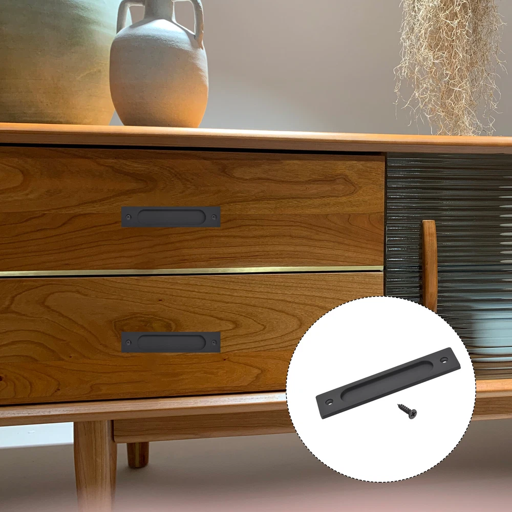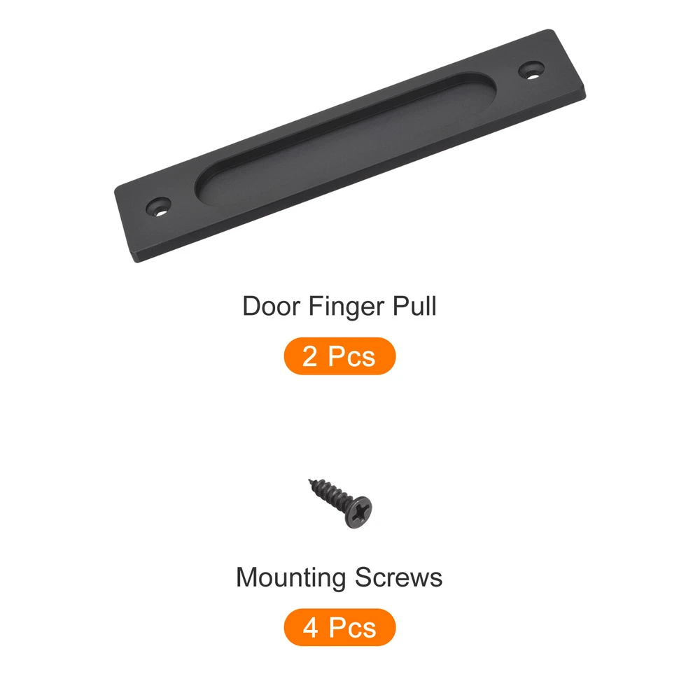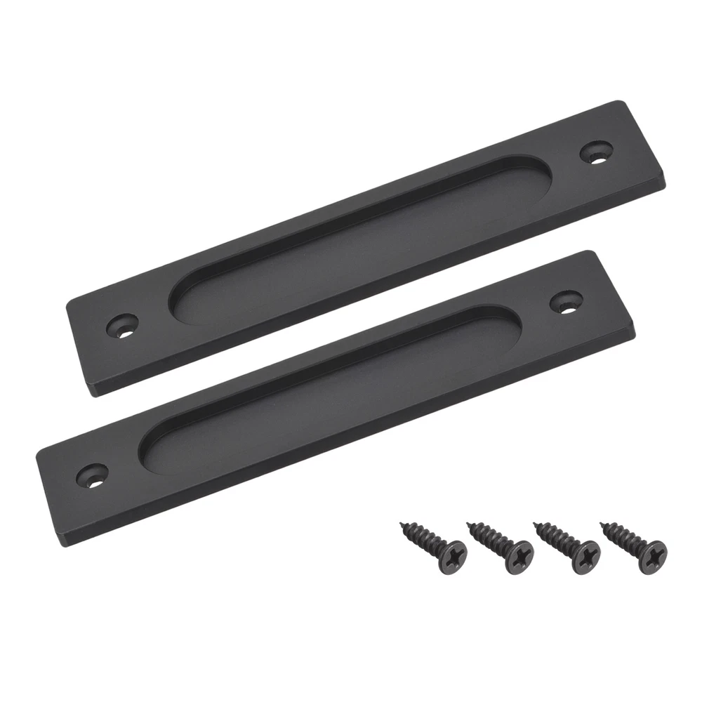 2Pcs 180mm Sliding Door Finger Handle Zinc Alloy w Screw Black Rectangle