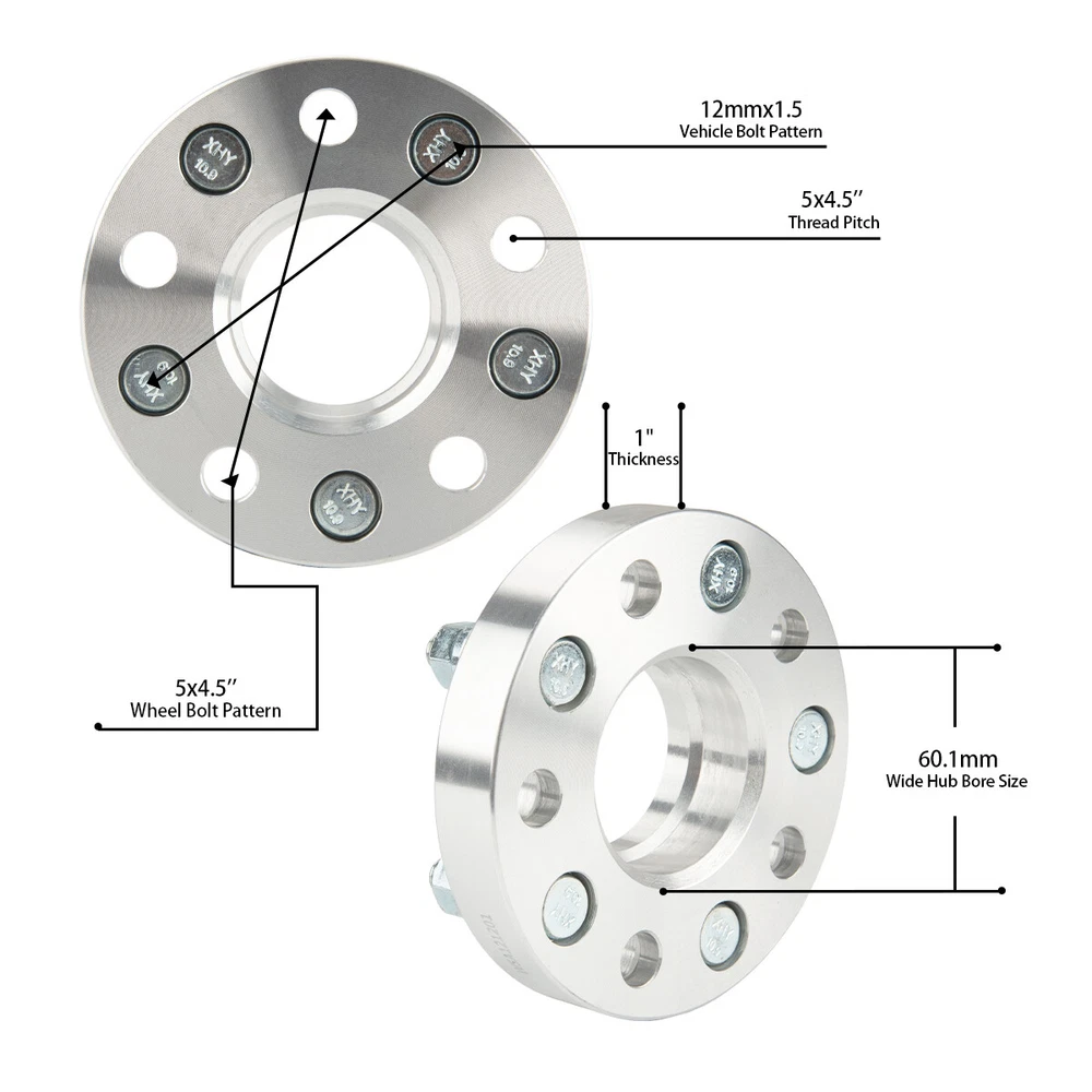 DESCRIPTION PAYMENT SHIPPING RETURN POLICY CONTACT US Specification: Condition: 100% Brand New Material: 6061 Aluminum Color: Silver Spacer Width: 25mm (1 inch) each side Vehicle Bolt Pattern: 5x4.5" (5x114.3mm) Wheel Bolt Pattern: 5x4.5" (5x114.3mm) Center Bore: 64.1mm Thread Pitch: 12 * 1.5inch Fitment: for For honda ACUR Fitment: For acura 2001-2003 For acura CL 2006-2011 For acura CSX 2013-2021 For acura ILX 2001-2006&2014-2016 For acura MDX 2007-2021 For acura RDX 1997-2004 For acura RL 2002-2006 For acura RSX 1996-2008 For acura TL 2015-2020 For acura TLX 2004-2014 For acura TSX For honda 1998-2002 For honda Accord (5 Lug Model Only) 2003-2021 For honda Accord 2006-2021 For honda Civic (Except Type-R) 2012-2015 For honda Crosstour 1997-2021 For honda CR-V 2011-2016 For honda CR-Z 2003-2011 For honda Element 2016-2021 For honda HR-V 2019-2021 For honda Insight 1995-2004 For honda Odyssey 2003-2008 For honda Pilot 1997-2001 For honda Prelude 2000-2009 For honda S2000 (For Rear Wheels ONLY) Package List: 2 * Wheel Spacers Installation Steps: Step 1: • Following your vehicle owner's manual, proper raise the vehicle and support it using adequately load-rated jackstands. • Remove wheels and inspect rotors for any damage or cracks. If any damage is identified, don't continue with this installation. • Remove any wheel visible rust from the mating flange on the vehicle's rotor. Check both the rotor and wheel mounting flanges for burns, rivet heads, or other obstruction which could prevent proper seating of the spacer/adapter. Step 2: • If proper seating can be achieved, apply provided thread locker to vehicle's studs and mount the wheel spacers on to rotor by torquing provided wheel spacers/adapter lug nuts. Tighten all lug nuts to the appropriate torque specification using a torque wrench. • Install wheel on to wheel spacer using existing lug nuts. Tighten all lug nuts to the appropriate torque specification using a torque wrench. • DO NOT USE AN IMPACT WRENCH. Step 3: • Check that wheel and tire clearance allow for full steering(lock-to-lock). • If there is no interference, vehicle may be lowered. • Re-check torque after traveling the first 50-100 miles, then again every 2000-3000 miles. What Do Wheel Spacers Do?? • Avoid Side Roll-over: Wheel spacers can help to reduce side roll-over due to an increase in resistance, especially when you are turning very fast, so as to ensure driving safety. • Provide Better Traction: After installing our wheel spacers, you can enjoy better traction when driving, so they will greatly improve your driving experience. • Widern Tire Spacing: After the tire spacing is widened, you can enjoy more room for modification on your cars performance and looking, such as installing a larger wheel. Payment Shipping Returns Contact Us FiveSoldtabLabel We will only ship to EBay confirmed shipping addresses. It is buyer responsibility to provide correct shipping address before purchasing. Buyer is responsible for any reshipping cost due to wrong or undeliverable addresses.入Payment Items are shipped within 1-2 business days. Damaged item due to shipping must reported to us within 48 hours of delivery in order to place claim with shipping company. Returns 1:contact seller first by email 2: send images : including outer package & scan label & item itself & with complete accessories etc necessary condition: one : Items have not been used. two : outer package without any damage. 3: For returns, please contact customer service for a return shipping label. 4: item delivered -payment repay 1Returns or exchanges will be subject to a 15% restocking fee on the original purchase. 2. Returns or exchanges due to shipping issues will be borne by the seller Priority: In the following cases, the shipping cost will be undertake by buyers 1: order accidently 2: find better price 3: change mind Notice: accessory missing/ quality issue/ shipping damage.etc please contact us for good solution first instead of opening return dispute. Our professional customer service team can give you a satisfactory solution! If you have any problem, please feel free to contact us from Monday to Friday. If you want to customize at bulk order, please contact us to find cheaper price.
