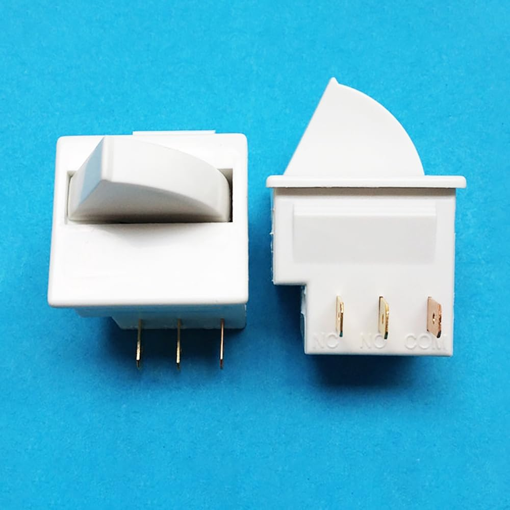 Keep your refrigerator or freezer properly lit with this 2-pack DSkoiph 3-Pin Door Light Switch Set , compatible with major brands like GE, Whirlpool, Maytag, Admiral, Amana, Kenmore, KitchenAid, and Magic Chef. These momentary switches are ideal replacements for faulty or worn-out door light controls, ensuring reliable operation and easy installation. Perfect for both top and bottom freezer models. Key Features Quantity: 2 Pieces Type: 3-Pin Momentary Door Light Switch Compatible Brands: GE, Whirlpool, Maytag, Admiral, Amana, Kenmore, KitchenAid, Magic Chef Function: Replaces worn or faulty fridge and freezer door light switches Easy Installation: Plug-and-play replacement design Durable Construction: Long-lasting performance Ideal For Refrigerator and freezer repair Appliance technicians DIY home appliance maintenance Replacing broken or defective door switches Rated Voltage: 125/250V AC. Rated Current: 2.5A 250V/6.0A 125V. Function: NC: Normally Closed, when refrigerator's door open it is close and light will be on. Universal compatible design, replacement for most Whirlpool, GE, Kenmore, Maytag, KitchenAid, Admiral, Amana, Crosley, Jenn-Air, Magic Chef refrigerators' door light switch. Connect pin size: 0.31"x0.19"x0.02"(LxWxThickness). Material: Plastic, Brass Package content: 2 x 3Pin Refrigerator Door Light Switch. Product Description Rated Voltage: 125/250V AC Rated Curren t: 2.5A 250V/6.0A 125V. Contacts Type: 1NO + 1NC + 1COM Number of Pins: 3 Pin Fitment: This light switch is single-pole and snap-in installation; Universal compatible design, replacement for most Whirlpool, GE, Kenmore, Maytag, KitchenAid, Admiral, Amana, Crosley, Jenn-Air, Magic Chef refrigerators' door light switch.