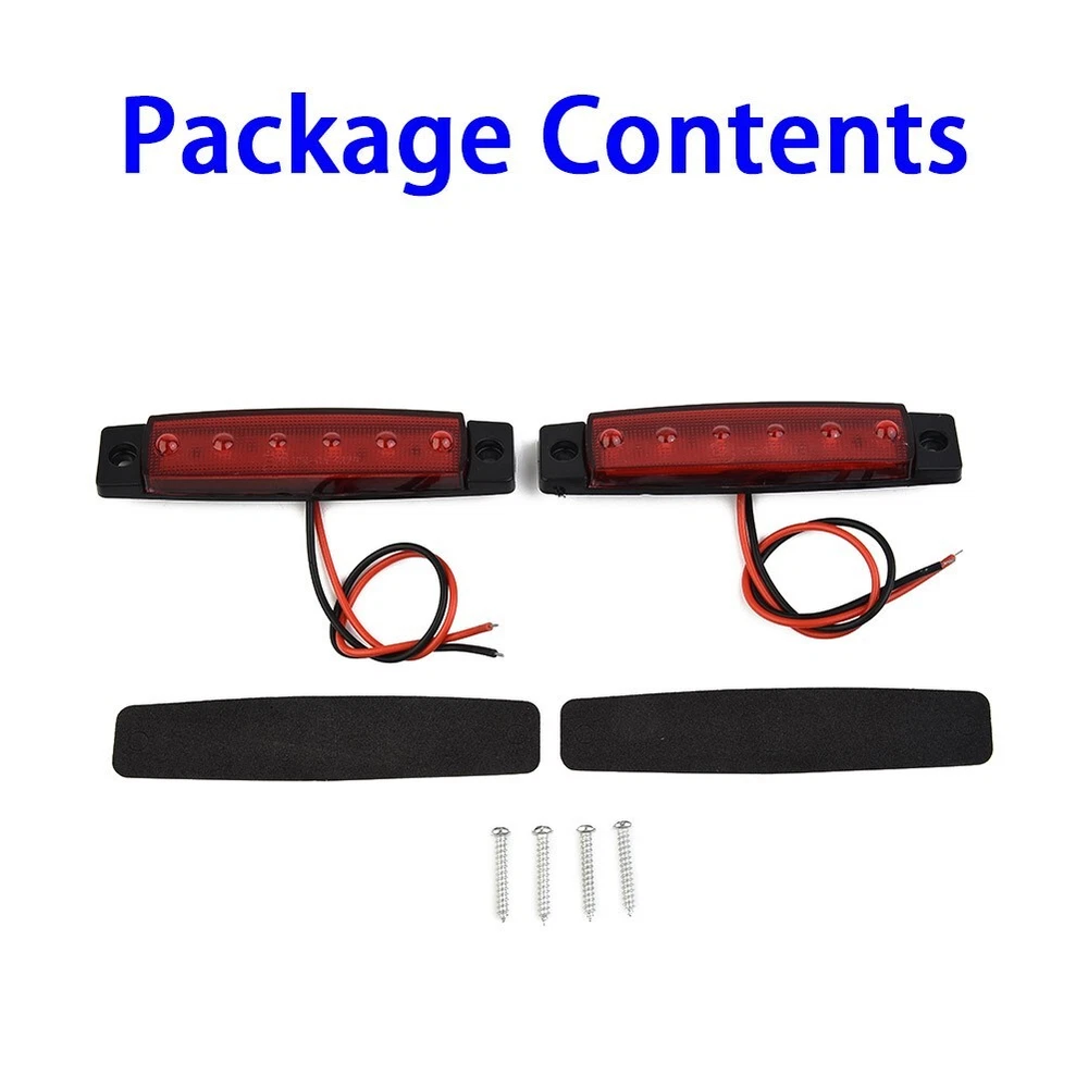 2Pcs 6LED Sealed Stop Turn Brake Tail Light Bar For Trailer Truck RV Side Marker DESCRIPTION Features: *6-LED red sealed waterproof tail lights for truck trailer RV boat *High quality & low power consumption *Uses high-quality double-sided panels, more stable performance *Easy to install and to use *Waterproof, reliable and safe *Comes with mounting screws *Can be used as side marker lights, tail lights, side lights *Applicable to most buses, trucks, trailers and vans Specifications: *Material: ABS *Color: Red (As Pictures Show) *Voltage: DC 12V *LED Quantity: 6 *Dimension: 100*20*8mm/3.9*0.8*0.3 inches (Approx.) *Holes Space: 8.3cm/3.27 inches (Approx.) *Cable Length: 28cm/11 inches (Approx.) *Quantity: 2pcs Package Contents: 2pcs Side Marker Lights with Mouting Screws Note: The real color of the item may be slightly different from the pictures shown on website caused by many factors such as brightness of your monitor and light brightness. POLICES Shipping Payment WARRANTY We only ship to confirmed Paypal addresses. Please comfirm that your paypal address is in line with your shipping address. Please kindly note that the c ombined shipping is not provided because the shipping fee is calculated by weight. Also, the each additional item means exactly the the same color and size. It takes about 7 -15 working days to US; about 10-30 working days to other countries. Transit time may be a little delayed because of the bad weather and customs inspection . If you do not receive your item within 30 working days since payment finished, please contact us immediately for further assistance. We accept payment via Paypal only. Payment must be made within 5 days, Non-payment may result in an UPI (Unpaid Item), eBay will automatically close your account if you accumulate 4 UPI's total. Import cutoms duties or taxes which are not included in item price, if any, are on buyer's responsibility. You can check with your local customs office for further information prior to bidding/buying. We strive for 100% customer satisfaction! Positive Feedback is very important to us. If you have any questions, p lease feel free to contact us via "Ask seller a question" . We will reply your email within 24 working hours.