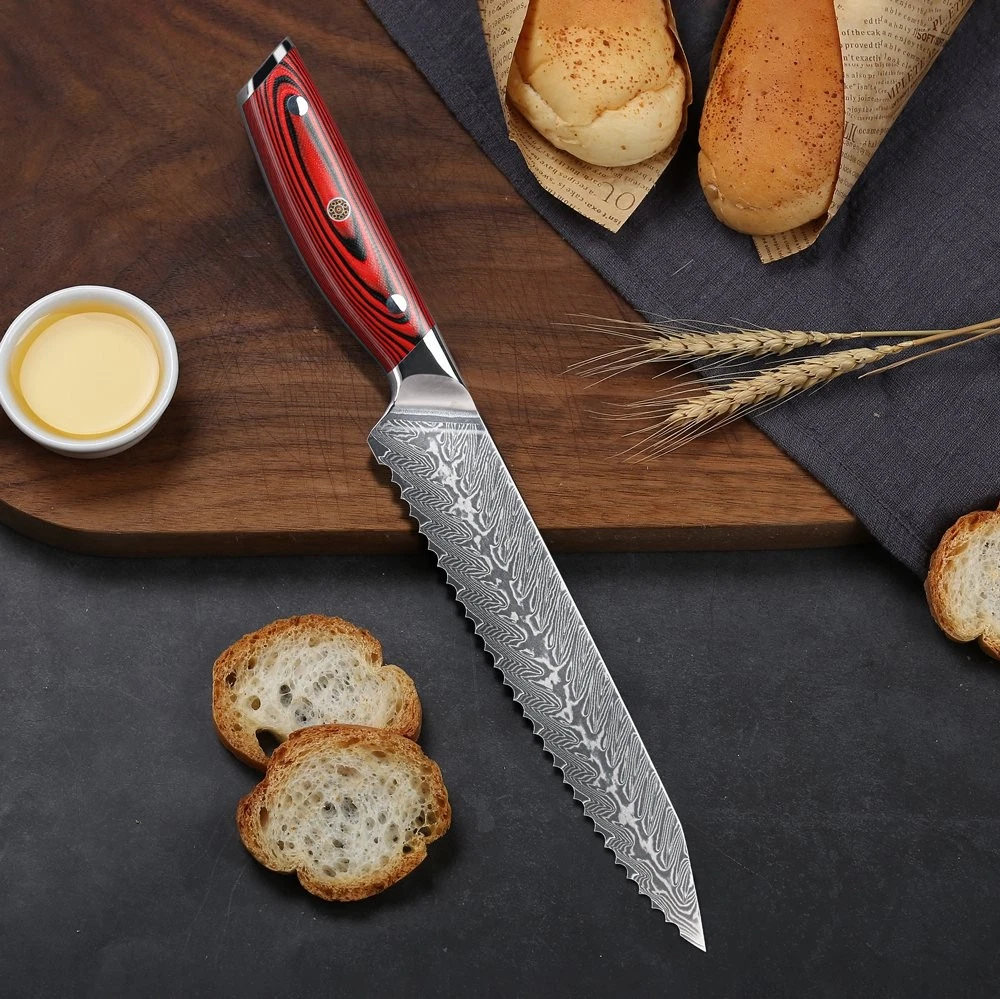 TURWHO 8inch Bread Knife 67-Layer Japanese VG10 Damascus Steel Kitchen Knife