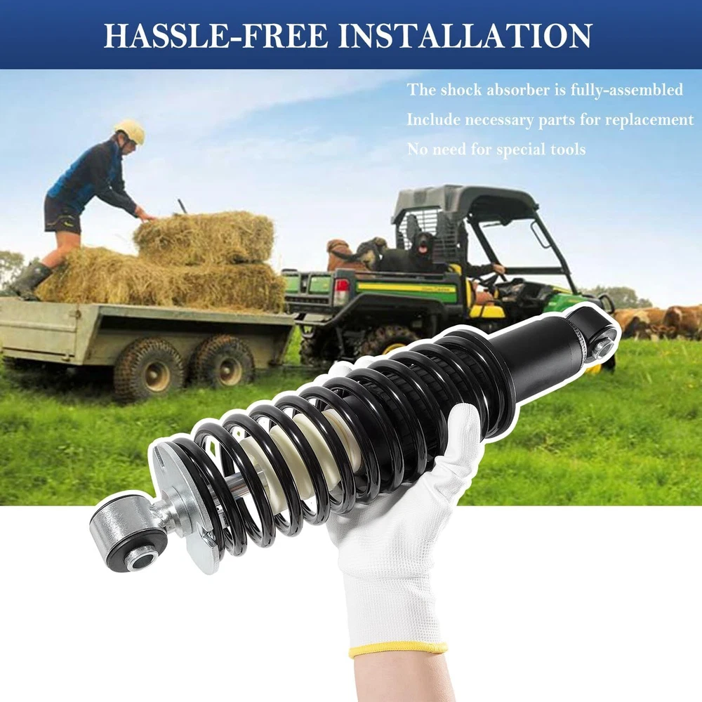 2Pcs AM135375 Rear Coil-over Spring Shocks Absorber for John Deere Gator HPX 4x4, Diesel, HPX 615E HPX 815E 2004-2020 2Pcs Rear Coil-over Spring Shocks Absorber Fits for John Deere Gator HPX 4x4, Diesel, HPX 615E HPX 815E 2004-2020, Rear Left & Right Shocks Struts Coil-over Spring Replacement for # AM135375 Great Compatibility: Fits for John Deere Gator HPX 2004-2017, for John Deere Gator HPX 615E, 815E 2018-2020, for John Deere Gator XUV620i 2007-2010, for John Deere Gator XUV850D 4x4 Diesel 2007-2010. What You Get: Package includes 2Pcs coil-over shock absorber for use on rear left and right strut (Replaces OEM# AM135375), manufactured and tested to meet original equipment standards and performance. Built to Last: Precisely machined from fully heat treated alloy steel with slick black oxide finish, higher strength, better corrosion and impact resistance, ensuring reliable and long-lasting durability. Easy to Use: The shock absorber is fully-assembled, including necessary parts required for replacement. No need for special tools. Payment Delivery details Terms of sales Returns Contact us Payment 1. All major credit cards are accepted through our secure payment processor Payoneer. 2. Please make sure your Shipping address is correct before you pay, cause it cannot be changed once the order shipped out. Delivery details 1. We only ship to confirmed ebay addresses. Your ebay address MUST MATCH your Shipping address. 2. Please read the shipment and payment detail carefully before you bid. Terms of sales ★If there are any problems with our products, Please feel free to contact us. We will always here to solve them for you. We should try our best to make a happy easy transaction. ★If you are satisfied with our products and our service, please tell your friend and leave us positive feedback. If you are not satisfied with our products or service, please DO tell us. Returns 100% Satisfaction Guarantee: Your satisfaction is our priority. We strive to give our customers excellent service.All our products support 60-Day money-back guarantee, 12-Month warranty for quality-related issues. Simply return it for your warranty. Contact us Any Questions,Just feel free to contact us on eBay.We will reply you in 1-2 business day.