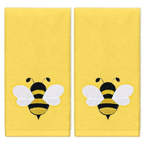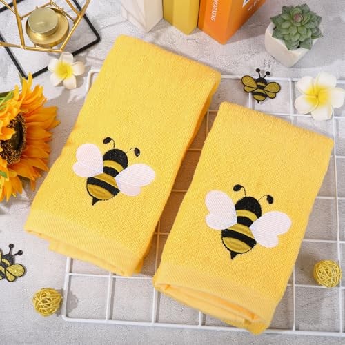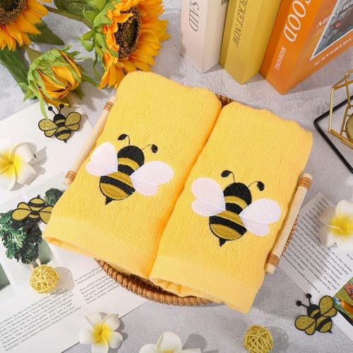2Pcs Bee Yellow Hand Towels Cotton Embroidered Bathroom Towels Bumble Bee