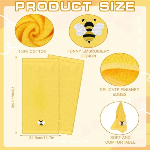Manufacturer: Does Not Apply Age Range Description: All Age Date First Available: December 31, 2024 Size: 29.5 x 13.8 inch Color: Yellow Item Weight: 6.4 ounces MPN: Does Not Apply Item Length: 1 Pattern: Bee UPC: Does Not Apply Number of Items: 2 Brand: Does Not Apply Type: Does Not Apply Theme: Rustic Item Height: 1 Customer Reviews: 4.8 out of 5 stars gtin13: Does Not Apply Product Care Instructions: Machine washable. Can be dried in a machine or air dried. Follow Item Width: 1 Special Feature: Absorbent Unit Count: 2.0 Count Item model number: F0823 Towel form type: Hand Towel Product Dimensions: 29.5"L x 13.8"W Material: Cotton EAN: Does Not Apply