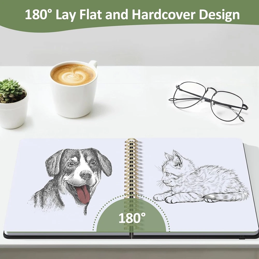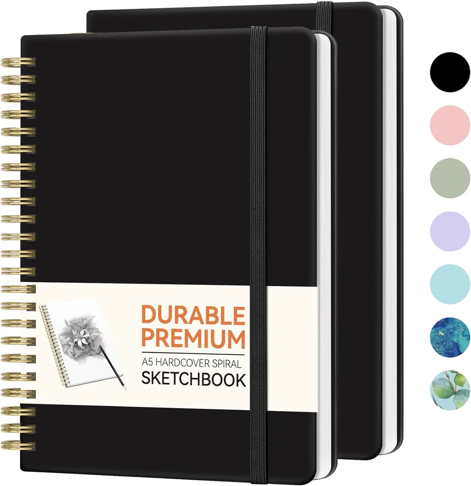 2Pcs Blank Spiral Notebook,8"X 5.6"Hardcover Sketch Book,100GSM Thick Paper,Art