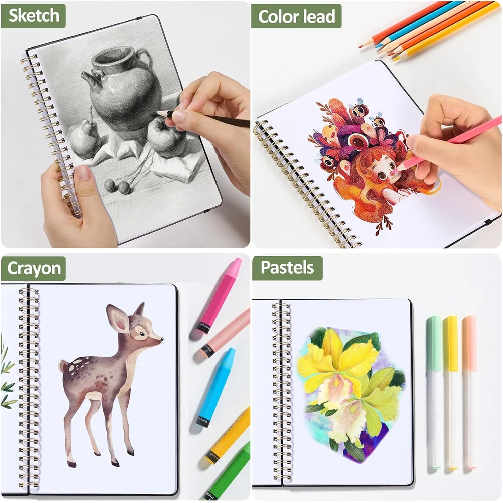 Store New Arrivals Add to Favorite View Feedback Contact 2Pcs Blank Spiral Notebook,8"X 5.6"Hardcover Sketch Book,100GSM Thick Paper,Art Sketchbook for Women & Adult,2 X 100 Pages Drawing Book Journal for School Office Drawing Work,Black Description Item model number FCA0545-0201A Style Unlined Number of Items 2 Color Black Binding Unknown Binding Manufacturer Part Number FCA0545-0201A Item Weight 15.5 ounces Theme Book Ruling Plain Ruling Type Plain Product Dimensions 12.2 x 8.66 x 0.67 inches Stronger Construction: our blank spiral notebook has a sturdier and waterproof cover to greatly protect your sketch book to last for years. This sketchbook is attached with a tough twin ring binding, allowing you smoothly flip the pages. Premium Paper: With 100 GMS Ink-friendly thicker paper, our professional drawing book avoids bleeding, smudging and feathering for clean artwork. Our drawing pad has nice-texture paper, which is designed especially for sketching and drawing. Plenty of Space - 2 PCS: You can get 2pcs spiral art sketchbooks at affordable price, with 100 pages in each book, with 180°lay flat and hardcover design, let you have maximum use of space and enjoy sketching even without table at any time and place. Perfect Size and Versatility: Measures 8”x 5.6", portable but large enough for your creative imagination. Ideal for school, office, home and travel, this excellent art journal fits seamlessly into your life for drawing, doodling, painting, writing. Superior and Thoughtful Gift: Our wonderful painting sketch books are perfect for kids, art students, travelers, scrapbook makers, and any art enthusiasts. Ideal gift for school and office supplies, care packages, drawing supplies. Product Description ABOUT US We offer the best prices around on high quality products. Our E-store includes media such as books, movies, music and games while offering electronics, toys, sporting apparel, clothing, tools, general home, garden items and more. SHIPPING We are always working hard to ensure your package arrives as soon as possible. Please understand that some factors like weather, high postal traffic, and the performance of shipping companies are outside of our control. We offer free shipping to the lower 48 states and ship within 2 business days of payment, usually sooner. We do not accept P.O. Boxes. Please provide a physical address. For shipping outside of the continental USA, we only use eBay's Global Shipping Program.The item is shipped to KY and then sent to the rest of the world. International customers are responsible for all duties and taxes. Continue to check out in order to calculate costs for shipping the item to your country. Messages regarding eBay's Global Shipping Program MUST be directed at eBay EXCLUSIVELY. RETURNS We offer a 30-Day Return Policy on items which you are not completely satisfied with. You have the option for a full-refund or an exchange of the item. No returns are available on items shipped outside of the USA. PAYMENT We accept PayPal. CONTACT US This page content is yet to come Please ad us to your favorite seller and visit again later Thank You CUSTOMER SATISFACTION We try our very best to make sure every customer is completely satisfied. If there's a problem, message us! We're happy to help. If you would like to order more quantitv than shown is available. you are welcome to place one order fox maximum available quantity and place one more order again because we aiwavs have more than shows in available items WE ACCEPT