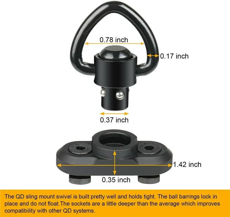 2Pcs M-LOK MLOK QD Sling Swivel Mount Push Button Quick Detach Sling Adaptor