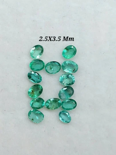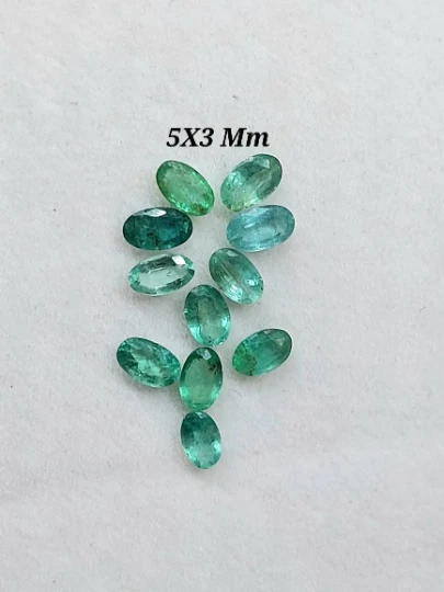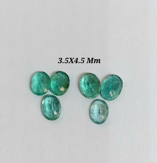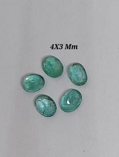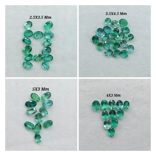 100 % Natural Emerald Faceted Oval Cut Gemstone Emerald Cut Stone Oval Shape Emerald Size : 2.5X3.5 Mm 3.5X4.5 Mm 4X3 Mm 5X3 Mm Origin-Zambia Piece : 2 Piece Code : 2055 Emerald is a crystal of the heart, alleviating heaviness in the emotional field and nourishing the aura with an energy of hope, encouragement, gentleness and abundance.It is a stone of regeneration and recovery, bringing in freshness and vitality.