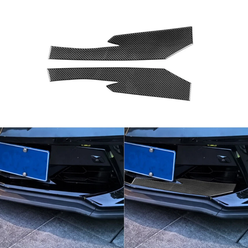 2Pcs Real Carbon Fiber Car Exterior Front Lip Cover Trim For Corvette C8 2020-24