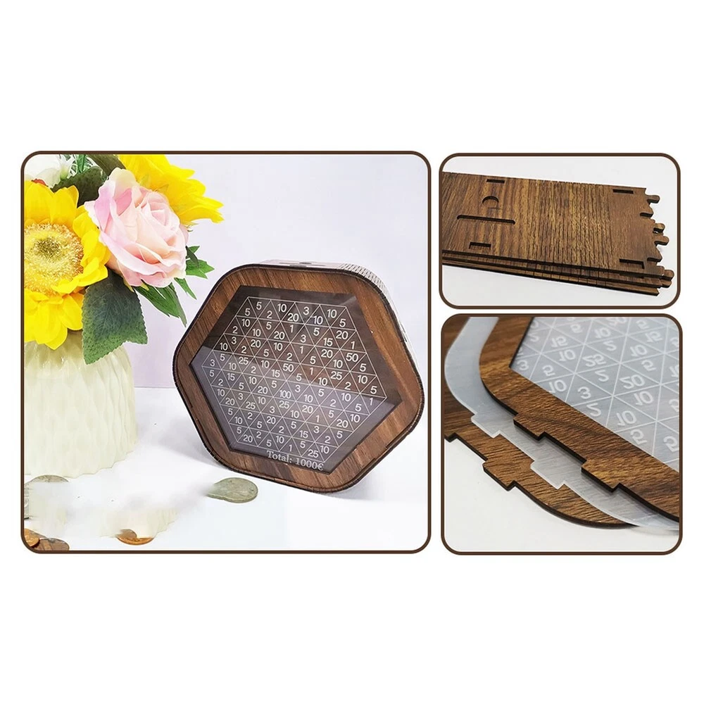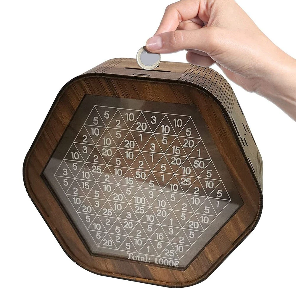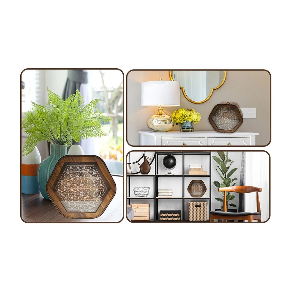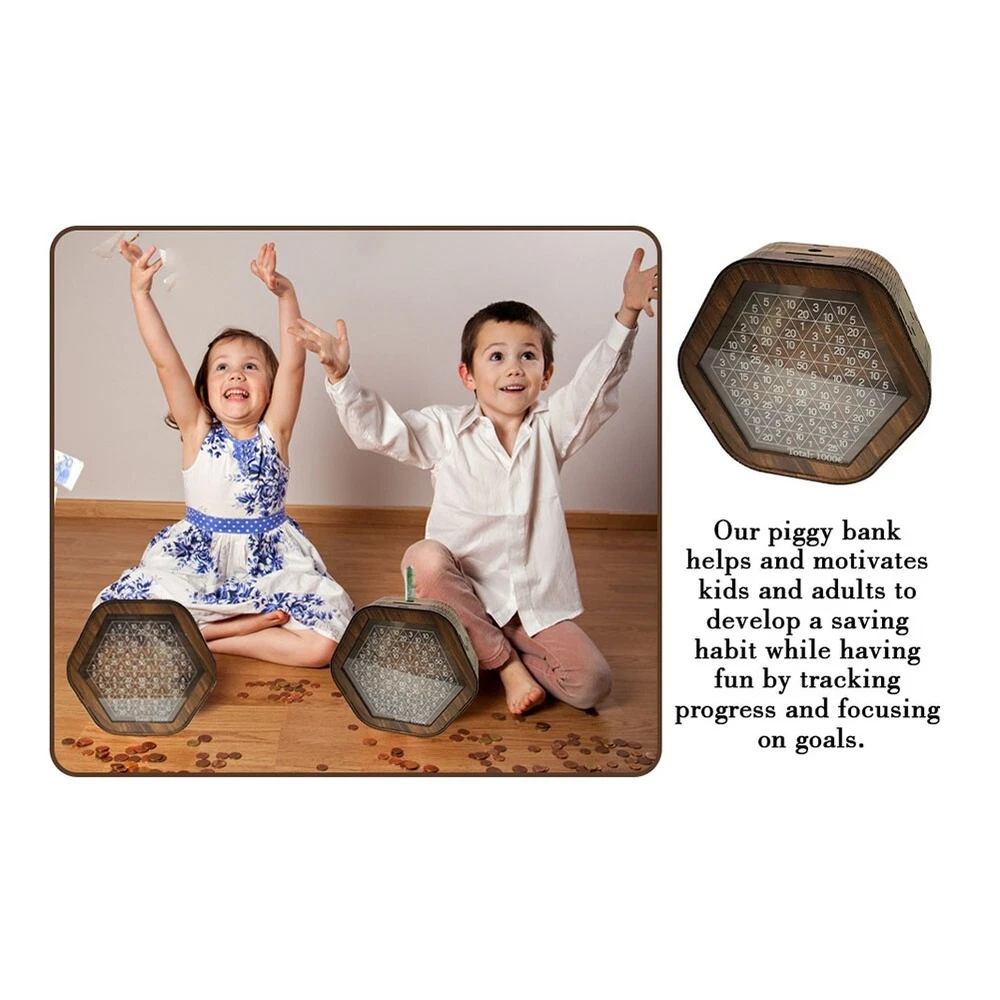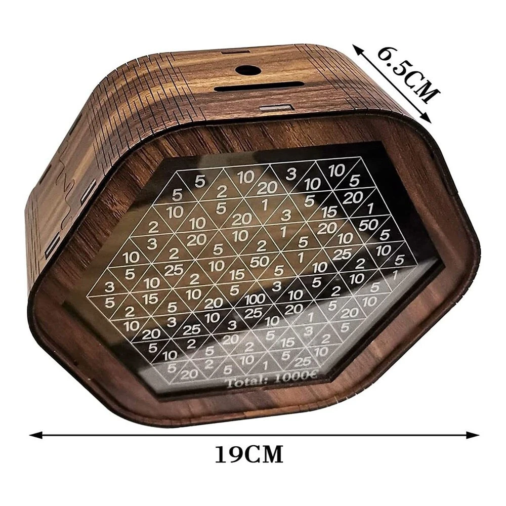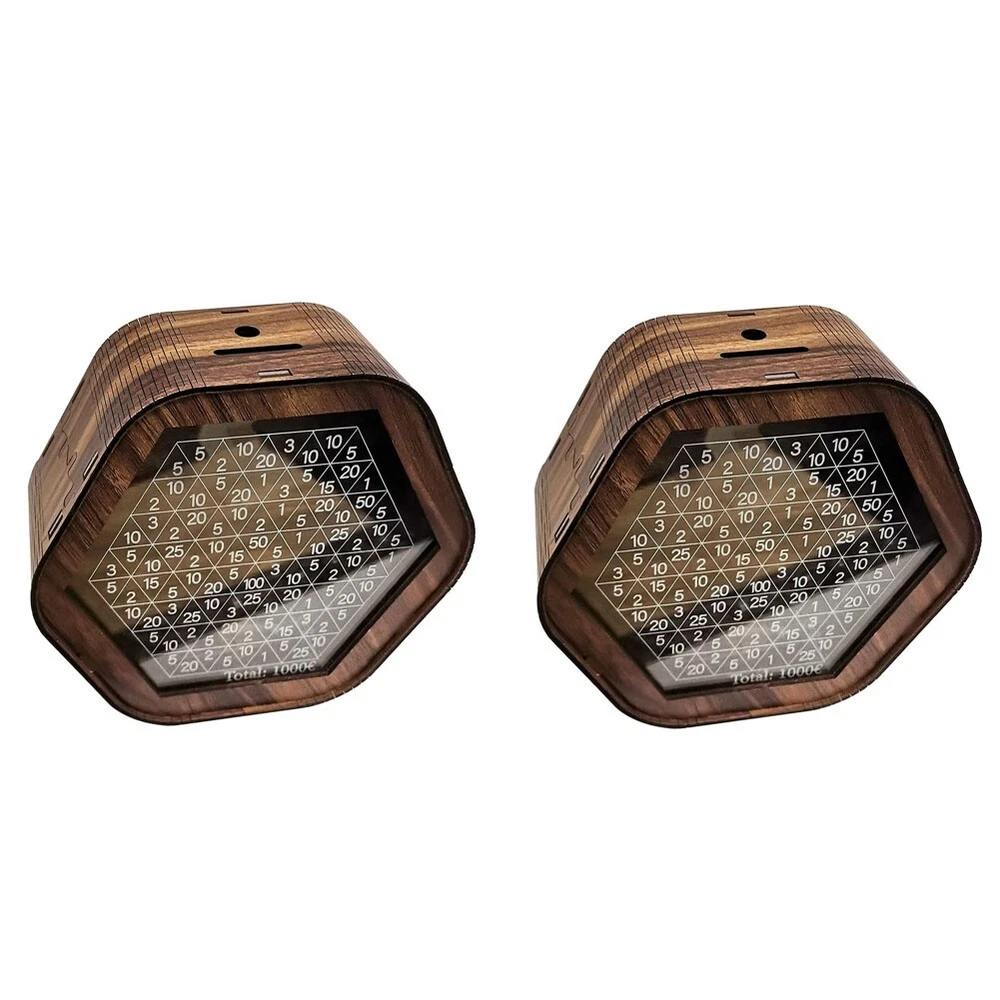 2Pcs Savings Box 6 Polygons Adult Money Bank for Cash Saving with Number2317 Money Saving Plan: Adult Pig Bank allows you to cut unnecessary expenses and save money for your goals or aspirations. You can create a money-saving plan to reach your goals. Design: Money Bank For Adults is tightly designed. It comes with only a small opening for storing banknotes and coins. You can't take out the inner banknotes. High Capacity: The large capacity Saving Bank For Adults has more space and can store 1000-1500 bills. Therefore, it is very suitable for long-term storage plan. wood: Savings Box is made of wood, which is lighter and more portable than stainless steel. It is easy to assemble and disassemble. Great Gift: Saving Money Box makes a sophisticated and meaningful gift. It makes a great gift for a growing child or a holiday gift that allows them to create their own savings plan. Features: Create your own savings plan Easy to disassemble and assemble There is two small openings for convenient storage of banknotes and coins Large space and large capacity size: About 19cm long Material: wood colour: As shown Package Contents: 2 x Savings Box (The slight difference between different batches of objects and pictures does not affect the normal use)