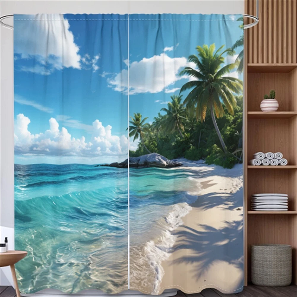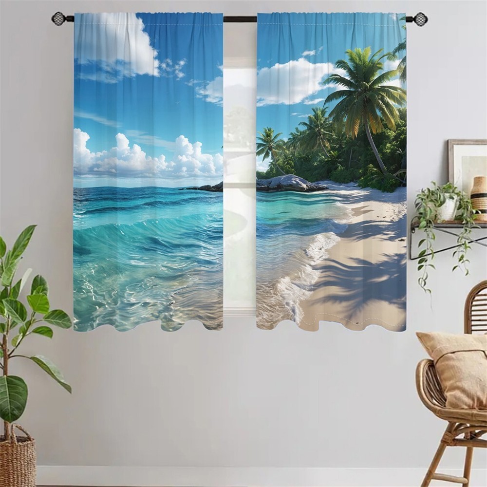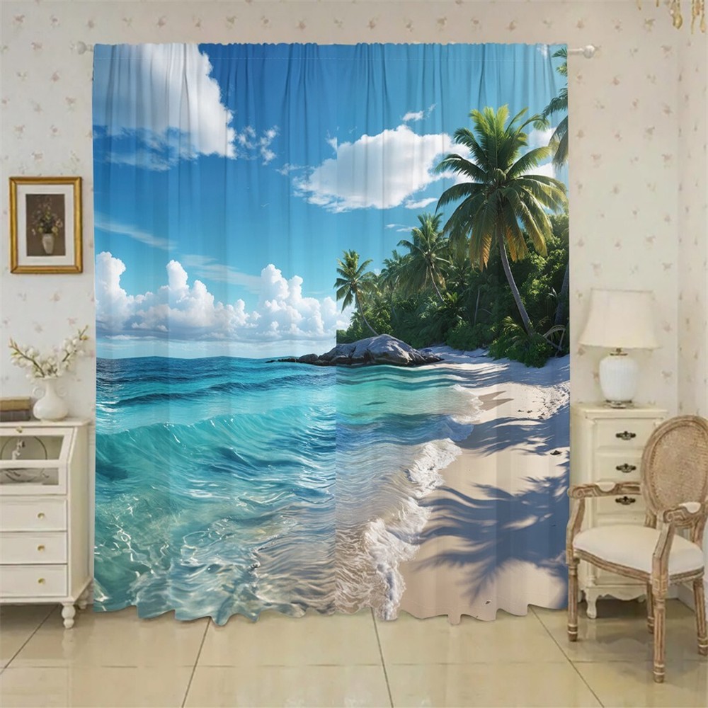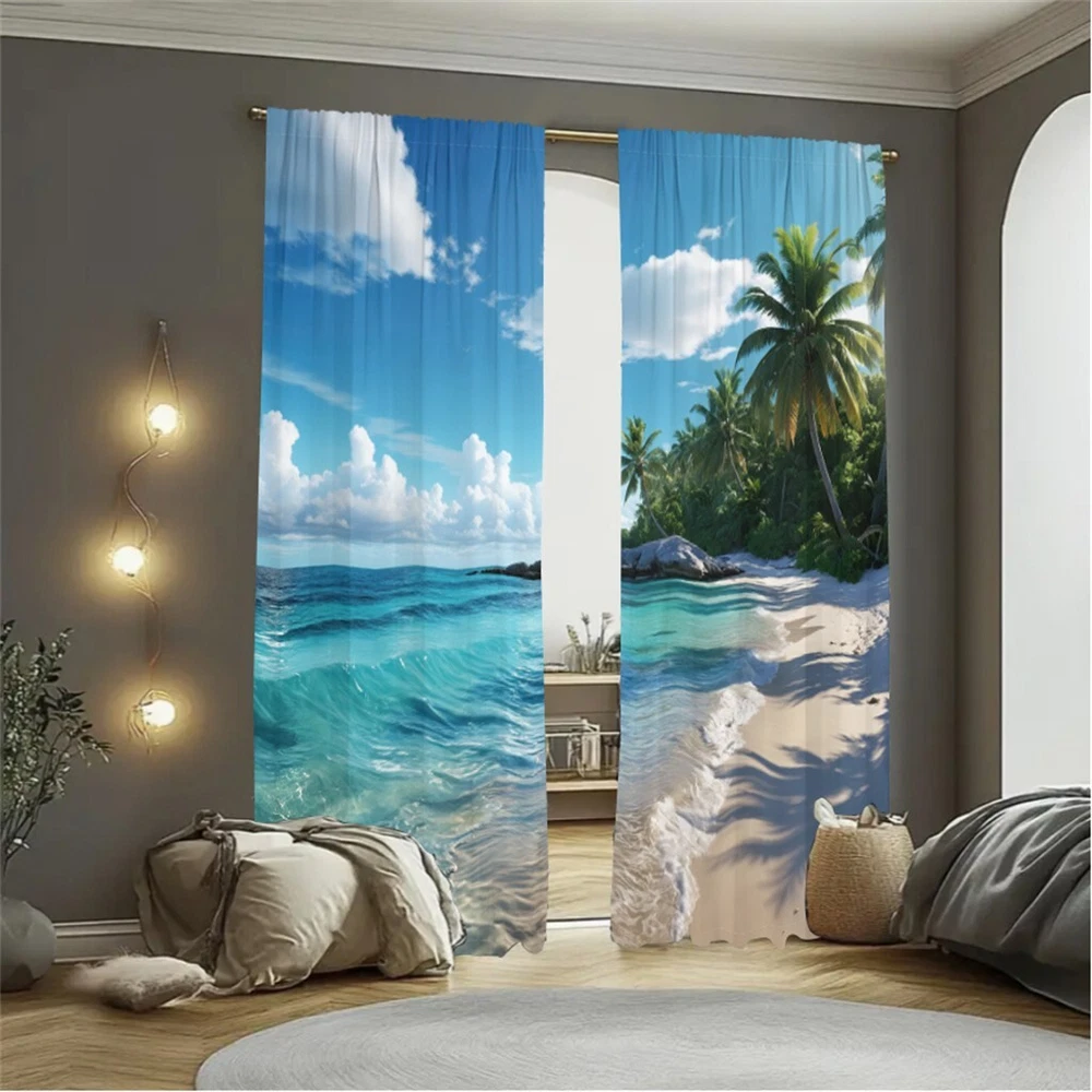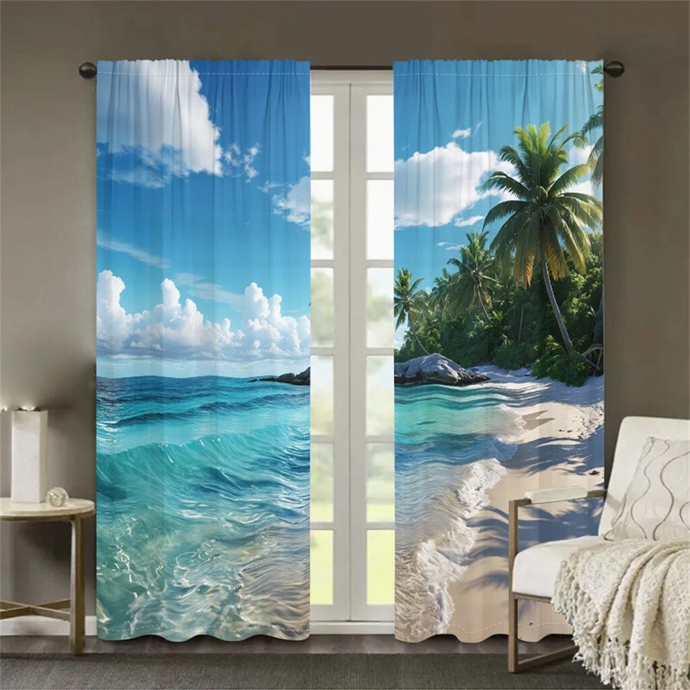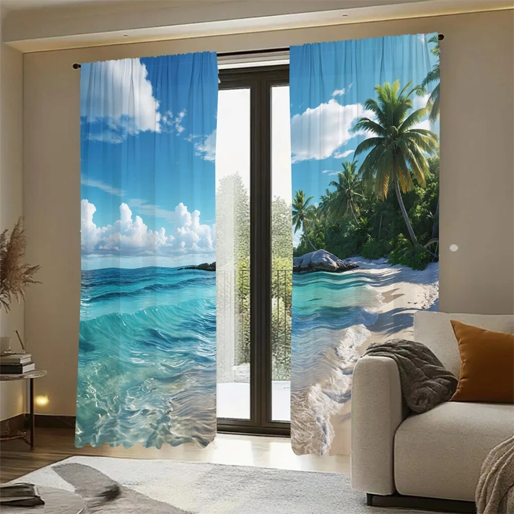 2Pcs Sunset Beach Palm Tree Curtains Ocean View Drapes for Bedroom Living Room