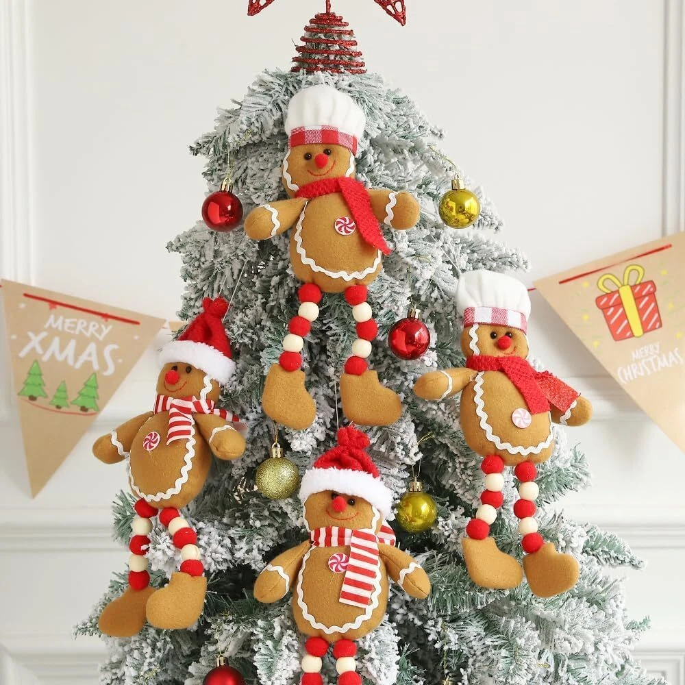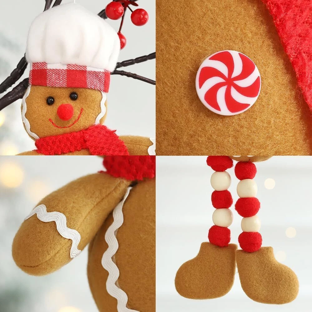 2Pcs/Set Christmas Hanging Gingerbread Man Ornaments, Plush Stuffed Figures with Chef Christmas Hat and Scarf for Xmas Tree New Year Birthday Home Party Decorations Gingerbread Man Ornaments: There is a hanging rope on the top, you can hanging them in Christmas tree, Christmas branches, fireplaces, balcony, indoor/outdoor scene, ceiling or any place. It would be a great festival gift to your family and friends Package Include: The set contains 1pc 11.8x6.3inch gingerbread man wear chef hat, and 1pc 11.4x6.1inch gingerbread man wear christmas hat, the two legs made of bead strings, which looks slender and eye-catching, will bring you so much fun High Quality: The Gingerbread Man ornaments are made from premium plush and elastic polyester, the stitching is strong and the touch is soft, the design is classic and lovely. They are not easy to break. It is perfect for personalizing your Christmas decoration Widely Applications: You can use it in many occasions, such as Christmas tree party, gingerbread theme party, new year eve party, home party, birthday party, wedding party, baby shower party, anniversary party and so on... Please Note: If you have any questions or problems with our products, please send us an email and we will solve it for you until you are satisfied