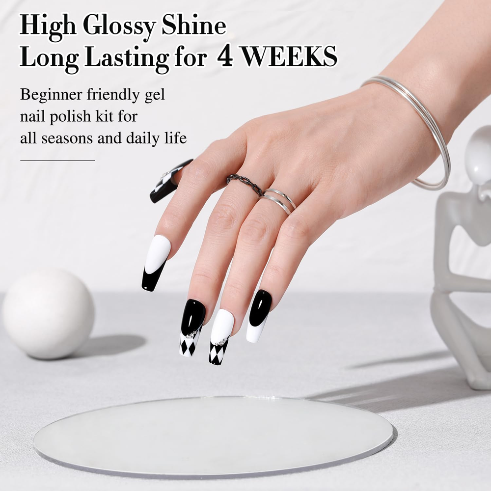 2-Piece 15Ml UV Gel Polish Kit - Pure White & Black Gel Nail Set