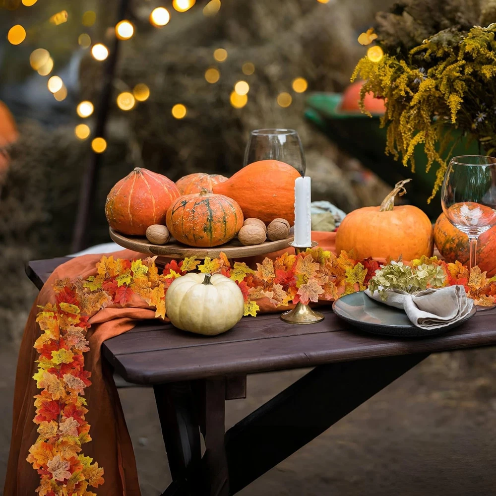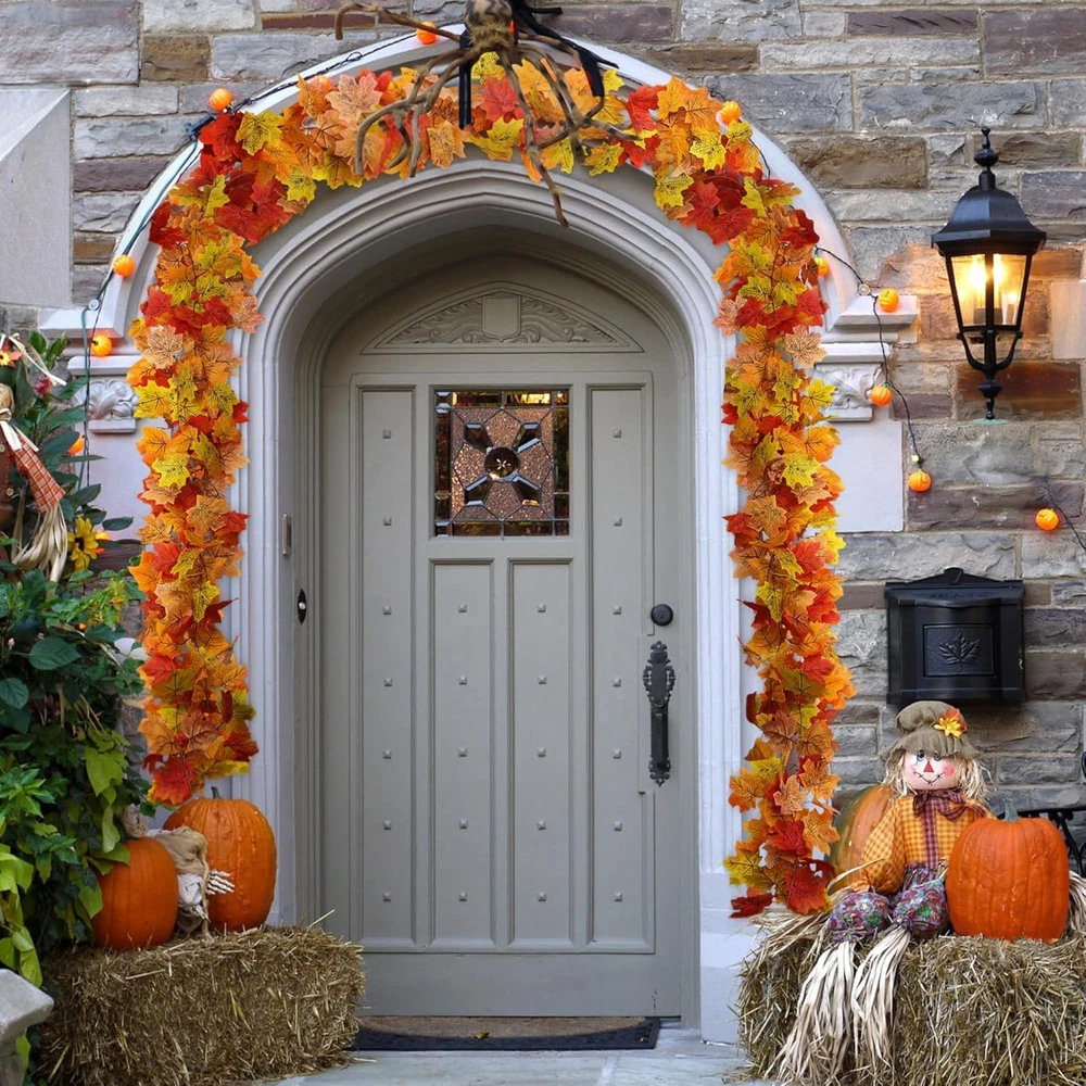 Sggvecsy 12 Pack 92Ft Fall Leaf Garland Artificial Maple Leaves Silk Red
