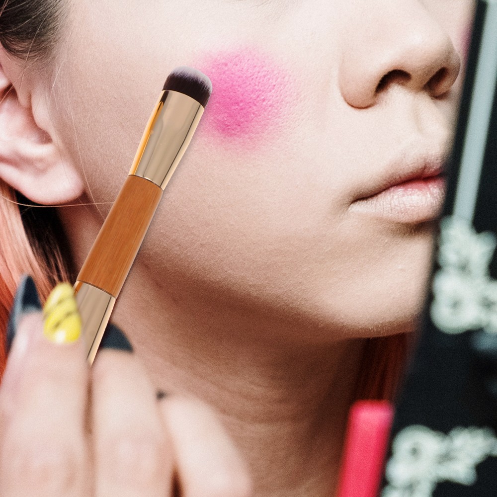 This double-headed blush brush is a game-changer! The soft bristles blend makeup effortlessly, and the dual ends make contouring a breeze. Perfect for travel or quick touch-ups—so handy and great quality for the price. Love how it fits in my bag without taking up space!