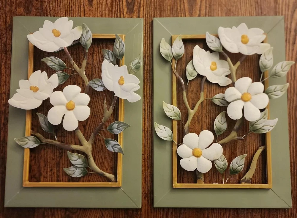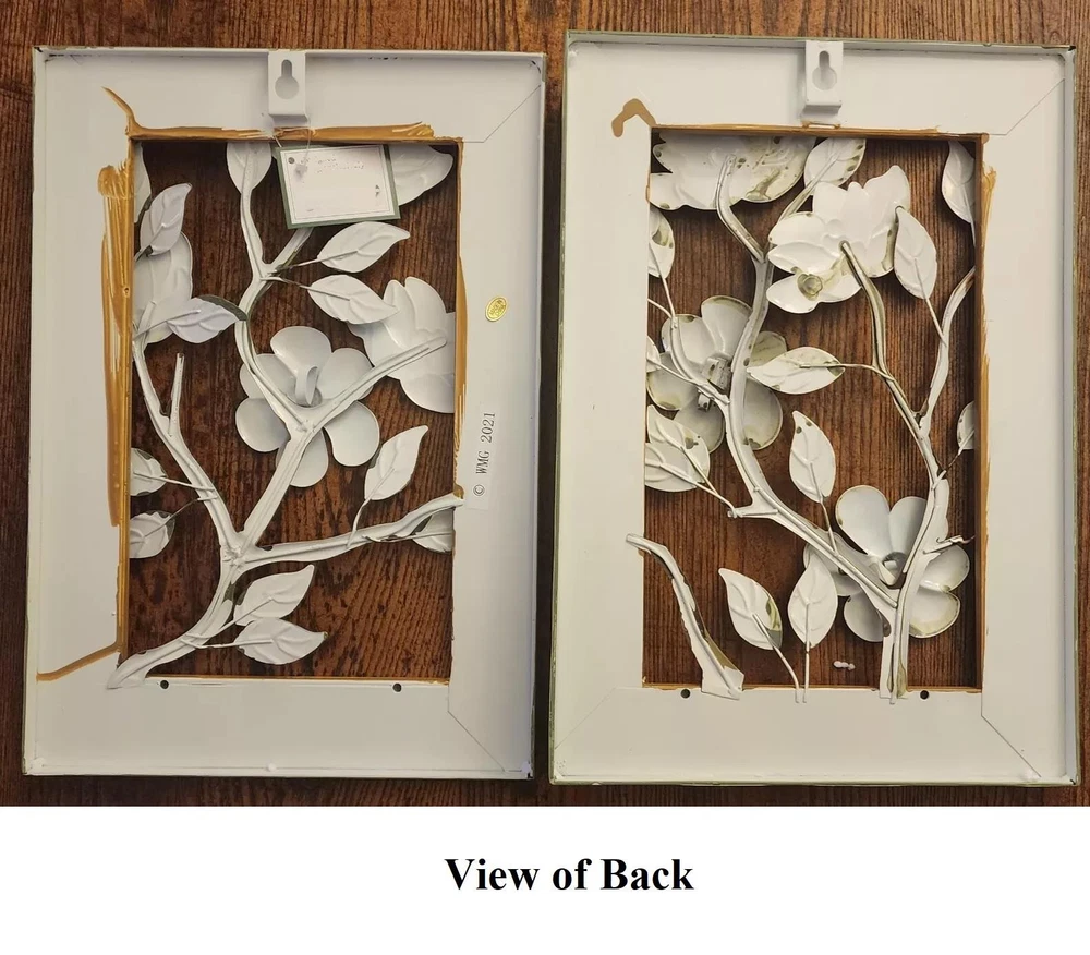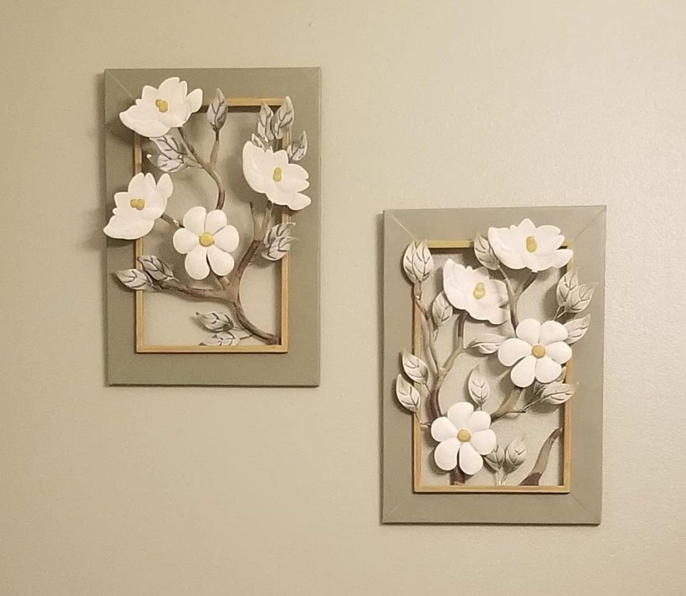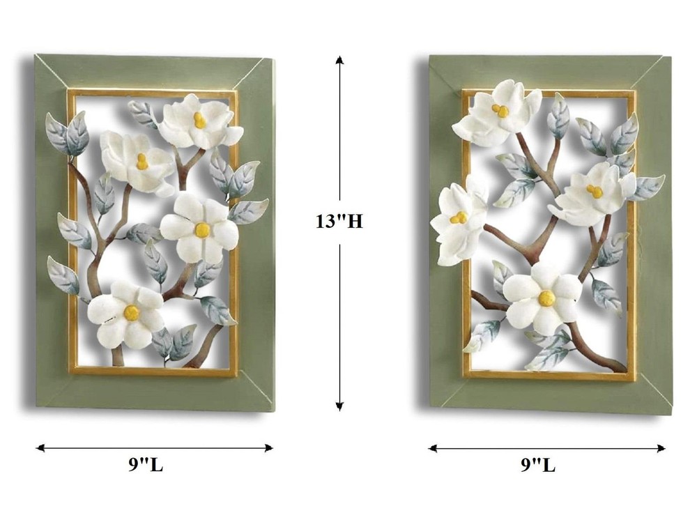 2-PC Blooming White Magnolias 3-D Wall Sculptures Framed Metal Art 9"Lx13"H #039 2-PC Blooming White Magnolias 3-D Wall Sculptures Framed Metal Art 9"Lx13"H #039 Click images to enlarge Description 2-PC Blooming White Magnolias 3-D Wall Sculptures Framed Metal Art 9"Lx13"H. These beautiful floral wall art are perfect for sprucing up your home for a touch of Spring. Each framed artwork features white magnolia flowers in a 3D design with silver-white leaves and yellow centers. Each is hand-painted and are easy to hang. Details: Set of 2 Framed Wall Art Each Measures 13"High x 9"Long Made of Metal Each Has Hook On Back For Easy Hanging Hand-Painted with Intricate Details ~Buy more than one item at the same time from our eBay store and save in shipping costs!~ (If buying different items, just put them all in your cart before paying, to get the combined shipping discount!) Shipping We use UPS SurePost, UPS, USPS and FedEx SmartPost to deliver our products to your home, depending on which method is more efficient for your order. We use suppliers for some of our orders and our suppliers will choose the service that is used for these orders. PLEASE MAKE SURE YOUR ADDRESS CAN BE VERIFIED BY USPS. Please allow 7-10 days for the item to reach your home. We cannot be responsible for items shipped to incorrect or incomplete addresses, which may result in the cancellation of your order. YES, we do combine shipping! The highest shipping cost item ships at regular price, and each additional item ships at $2.00 more in additional shipping charges. If you are buying several different items from our store, put them all into your cart before paying to get the combined shipping discount. Terms of Sale Unless otherwise noted, we accept returns up to 30 Days after your purchase, through the eBay Returns System. Please use eBay to contact us if there is any problems or issues with your order. In some cases, we order the item purchased from one of our suppliers, and it is shipped directly from our supplier to the customer. There are times when an item unexpectedly becomes unavailable from our supplier. We do our best to check on all of the items availability several timea a day. If an item is unexpectedly unavailable, we will issue a refund for your order immediately. Contact Us Please use the message center in eBay to contact us. We check our message box in eBay several times a day. If you have any questions or concerns with your order, please feel free to contact us. We care very much about our customers being 100% happy with their purchases. We would very much appreciate you letting us resolve any issues you may have with your order by contacting us first, before taking any other unnecessary actions. Get images that make Supersized seem small. Showcase your items with Auctiva's Listing Templates! THE simple solution for eBay sellers.