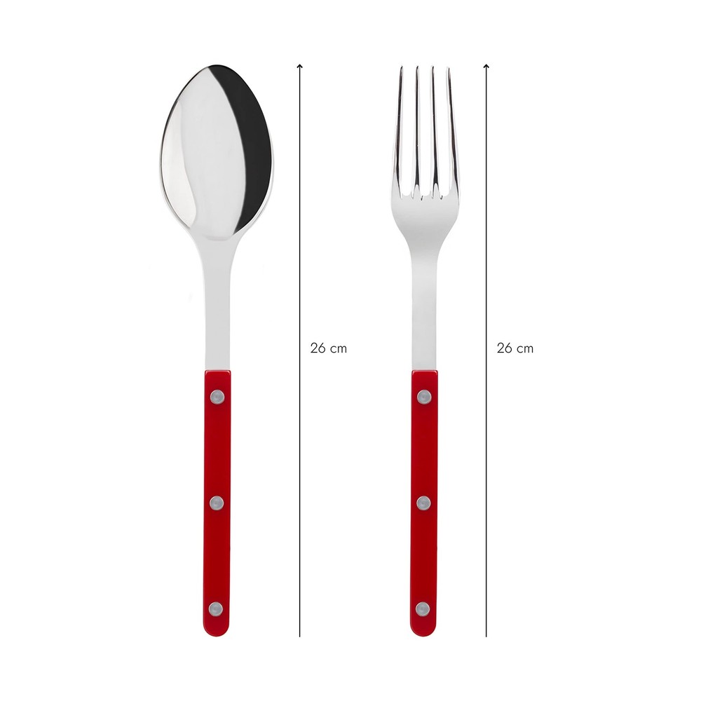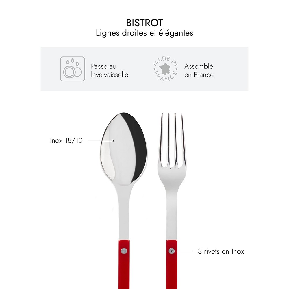 With the Bistrot collection, we drew inspiration from the places we adore: our restaurants, terraces, and cafes. When designing these cutlery pieces, our aim was to stay true to tradition while embracing modernity. The lines are simple, the rivets are present, and an array of colors and materials are incorporated. From vibrant red to soothing blue, with materials featuring horn or scale-like effects. Available in both glossy and vintage finishes, we are confident you will appreciate this collection, as we intended it to be both authentic and contemporary. Featuring a large fork for serving meats and a large spoon for accompaniments, this Sabre cutlery set is an essential addition to your daily dining. It complements your tableware perfectly, completing your dining collection. 2-PIECE SERVING SET: This 2-piece serving set includes a 10.2" large fork for meats and a 10.2" large serving spoon for delectable accompaniments. A must-have addition to complete your flatware collection. STAINLESS STEEL FORK AND SPOON: This set combines a beautiful play of premium materials, featuring 18/10 stainless steel cutlery with a brilliant finish and nylon handles. DISHWASHER-SAFE AND MORE: Enjoy a cutlery set that is incredibly easy to maintain as it is dishwasher-safe and from Bisphenol A, per the law 2012-1442. It will serve you well for many years! BISTROT COLLECTION: Inspired by the places we cherish: restaurants, terraces, and cafes. With its sleek design, 3 stainless steel rivets, and a wide array of colors and materials, this collection exudes both authenticity and modernity. FRENCH SAVOIR-FAIRE: is a French brand of handcrafted tableware, showcasing the artistry of French craftsmanship. Our cutlery is proudly made in France, crafted at our workshop in the Parisian region.