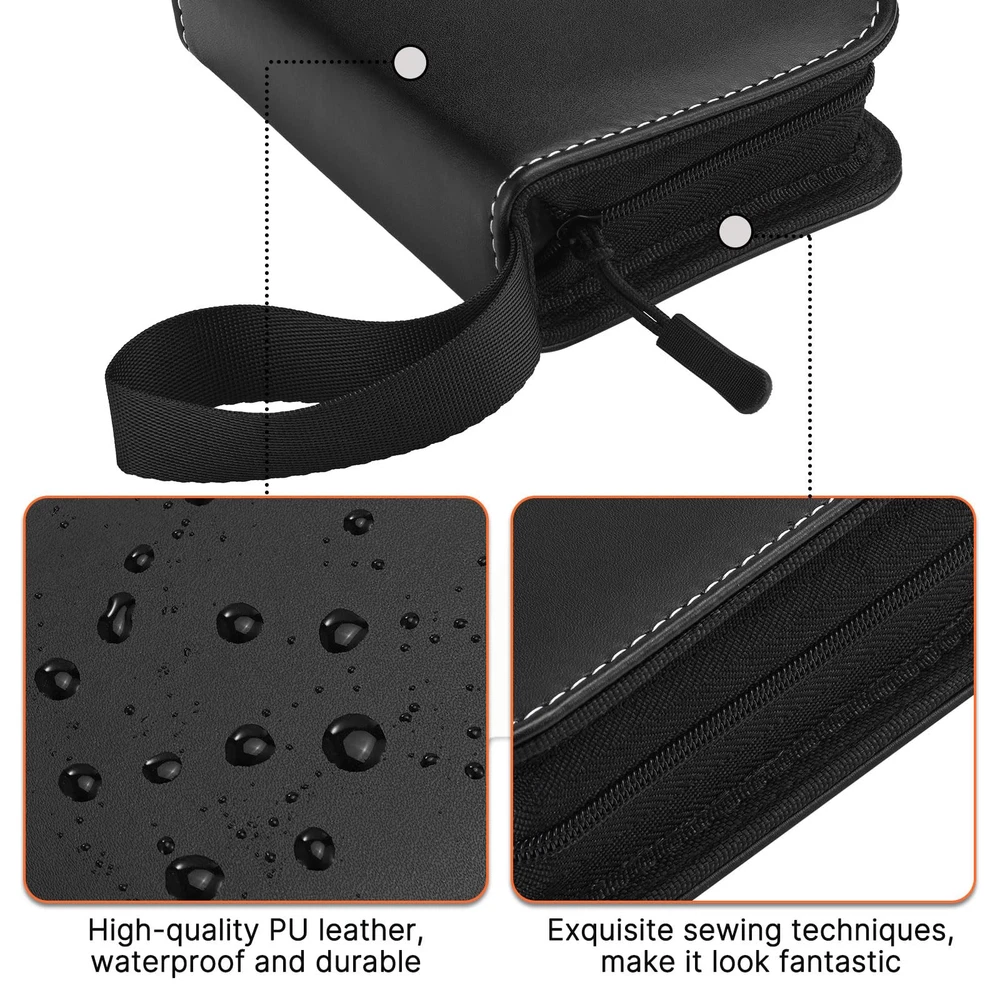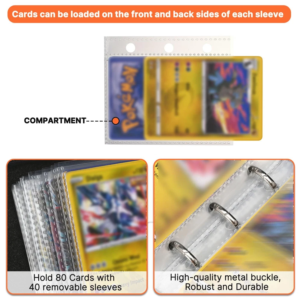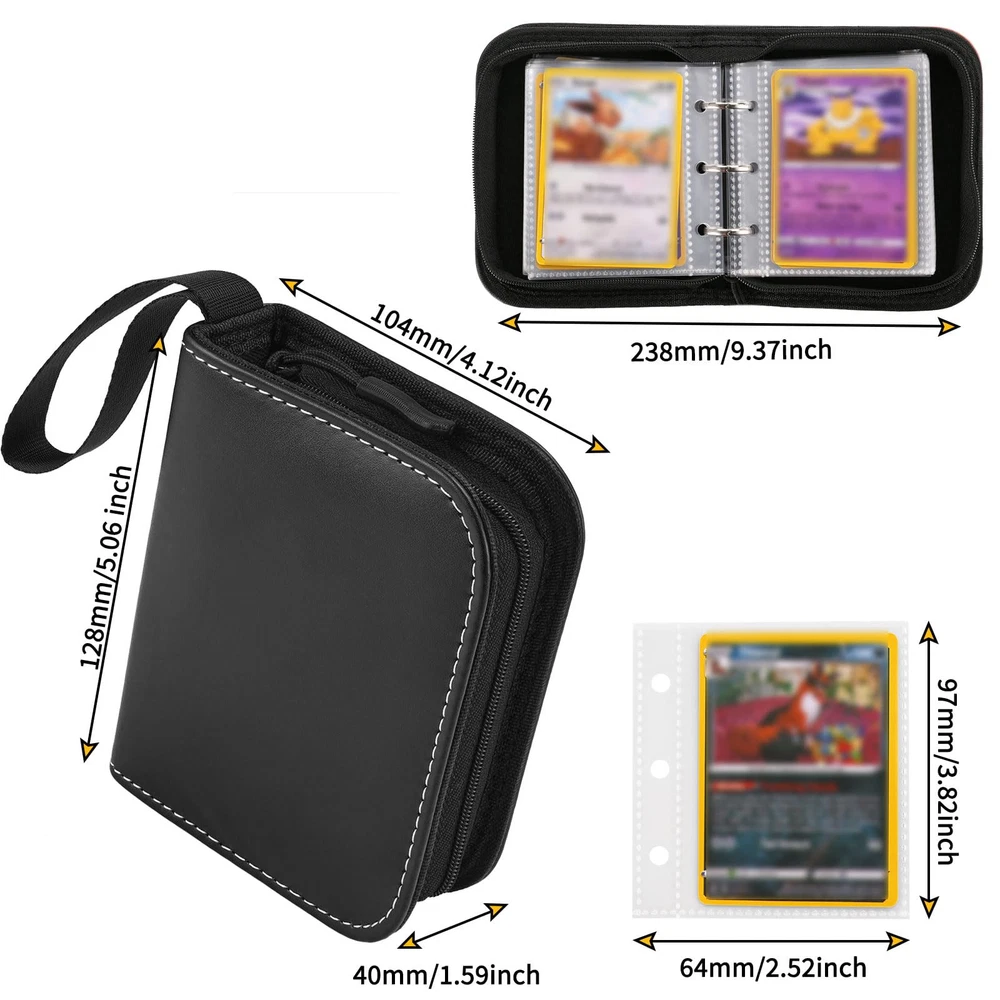 Convenience is key, which is why we designed this binder to be easy to use. You can fit card sleeves into the binder, and load them with your favorite cards. For display or storage, it's up to you! It's also perfect for quick access to all of your favorite cards. It's a great binder for everyday carry! Dimensions: Binder Size: 5.06" x 4.12" x 1.59" (inches) Sleeves Size: 3.82" x 2.52" (inches) Number of Pages: 40 Pages Excellent and economical choice for the TCG player or collector. The full size (2.5" x 3.8") pages are made from a polypropylene material that is archival safe, acid-free, and PVC free. Fits TCG cards perfectly, it can hold 80 Cards with 40 removable sleeves. card size is with most of the trading cards, such as My Little Pony, Panini, X-Men and etc. Enjoy collecting different types of cards safely! The high-quality materials and exquisite sewing techniques make it look fantastic and durable. You will never worry about the cards falling apart. Waterproof and durable, you’re guaranteed a long-lasting and visually-appealing album. Built to last for the long haul, this is an album that will look great on display for many years to come! This card binder is made of premium polyurethane leather and sturdy pages to hold your collection. Its polyurethane leather outer layer is both waterproof and stain-rejecting, so your cards will stay safe.
