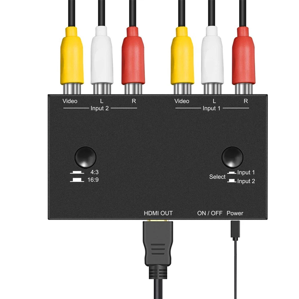Features: 1. 2 Port to HDMI Converter: Connect to Two RCA Sources (such as DVD and for N64) at the Same Time to Avoid Frequent Plugging and Unplugging, Facilitatingthe Use of Multiple Devices 2. Support HDMI Output: 2AV to HDMI Converter is a Universal Converter for Analog Composite Input to HDMI 1080p 60HZ Output 3. Plug and Play: Plug and Play, no Driver Installation Required. Support 4:3 and 16:9 Outputs, Easy Switching. Support PAL, NTSC3.58, NTSC4.43, SECAM, PAL/M, PAL/N Standard TV Format Input 4. Extensive Compatibility: AV to HDMI Converter with for N64, For PS2/3, for SEGA Saturn/ for GENESIS, for PS ONE, for VCR DVD Player, TV and Projector etc 5. 2AV Switcher/2AV To HDMI Converter: Provide Advanced Signal Processing with Greatprecision, Colors, Resolutions, and Details. 2 Port AV to HDMI Converter Specifications: Input Ports: 2xRCA (Yellow, White, Red) Output Ports: 1xHDMI Support for PAL/ for NTSC_M/ for NTSC4.43/ for SECAM/ for PLA-M/ for PAL-N Support resolution: Up to 1080p60hz Power Supply: DC5V1A(Not included 5V1A power adapter) Product List: 1x 2 Port AV To HDMI Converter 1x USB Power Cable 1x HDMI Cable 1x User Manual