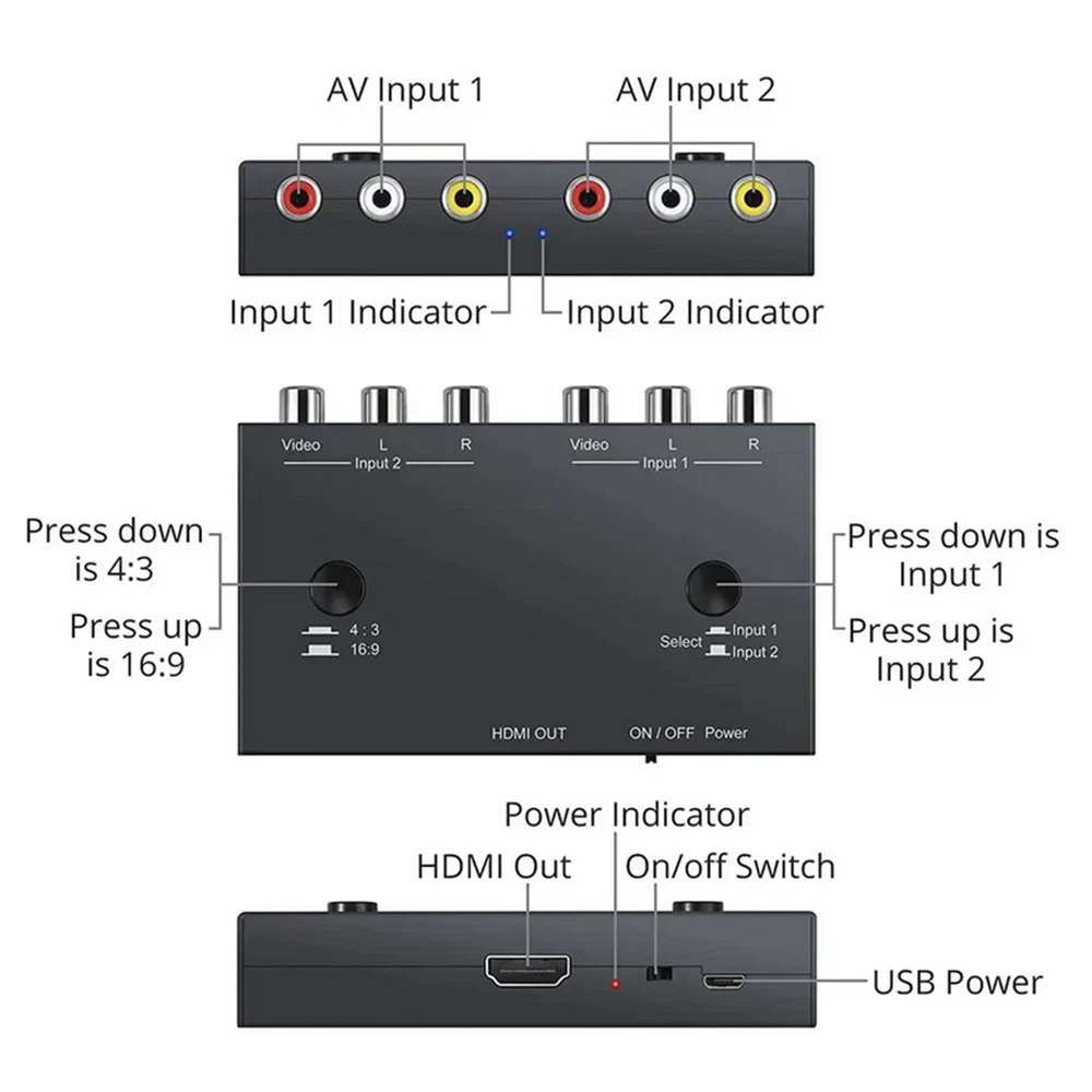 2-Port AV to HDMI Converter with Dual RCA Inputs, 1080p 60Hz Output