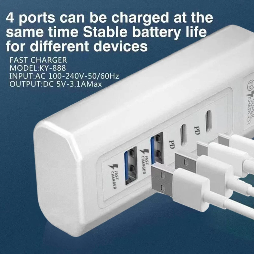 2 Port Type C + 2 Port USB Charging Station Hub Desktop Wall Cell Phone Charger Bullet Points: High-grade Materials: This USB plug charging adapter is composed of flame-retardant material that can survive high temperatures and is durable. It also has a heat control feature that lowers the chance of fire. Quick and Flexible Power: This USB plug adapter has a PD 20w fast charging port that can power up your smartphone, tablet, speaker, earphone and more in no time. It supports most USB C and USB-A cables. Useful Design: No more hassle with multiple adapters, this 4-in-1 design has 2 Type C ports and 2 USB A ports to charge 4 devices at once. Just plug in and get ready to go. Portable Design: Whether you are traveling or working, you can easily put this travel charging station in your backpack or pocket. It is lightweight and only weighs 120g, so you can meet your charging needs without any hassle. Durable Design: This USB plug charging adapter is made of high-quality materials that can withstand daily wear and tear. It also has short circuit protection, overheating protection, overcharge protection, and overvoltage protection to ensure the safety of your devices. This 20W multi-ports charging socket is the perfect companion for your gadgets. You can charge 4 different devices at the same time, such as your phone, tablet, laptop, and speaker. It is durable, compact, and lightweight, so you can easily put it in your backpack or pocket. It also has overcharge protection to prevent damage to your devices. With this charging socket, you can enjoy your music, work, or entertainment without worrying about running out of power. Name: 20W Mini PD Socket Product line length: 1 meter Product material: ABS+PC fire retardant material Packing List: 1*20W Mini PD Socket Note: Please accept that there is a color difference in the product due to lighting effects and photographing angles. The product size has a tolerance due to hand measurement. 1.You can make a Credit payment via Paypal.Paypal will let you use MasterCard,Visa to pay. 2.Payment should be completed within 5 days after auction closed, or unpaid dispute will be filed for an closing auction.An unpaid case will be filled after 4 days. ● We strive for 100% customer satisfaction ! ● Positive Feedback is very important to us. ● We hope that you contact us immediately BEFORE you give us neutral or negative feedback, so that we can satisfactorily address your concerns. ● We promise to offer the lowest price and high quality produce. Dear buyers : ● Welcome to my store ! ● Your satisfaction is our top goal,we appreciate your patronizing. ● If you have any questions, please contact us before leave negative or neutral feedback, we will try our best to solve the issue to your satisfaction, thanks ! ● If you are satisfied with our service, please rate the details of the transaction (Detailed Seller Ratings) on eBay. ● Please always talk to us via ebay Message. ● We appreciate your business and look forward to growing our e-Bay sales with satisfied customers.