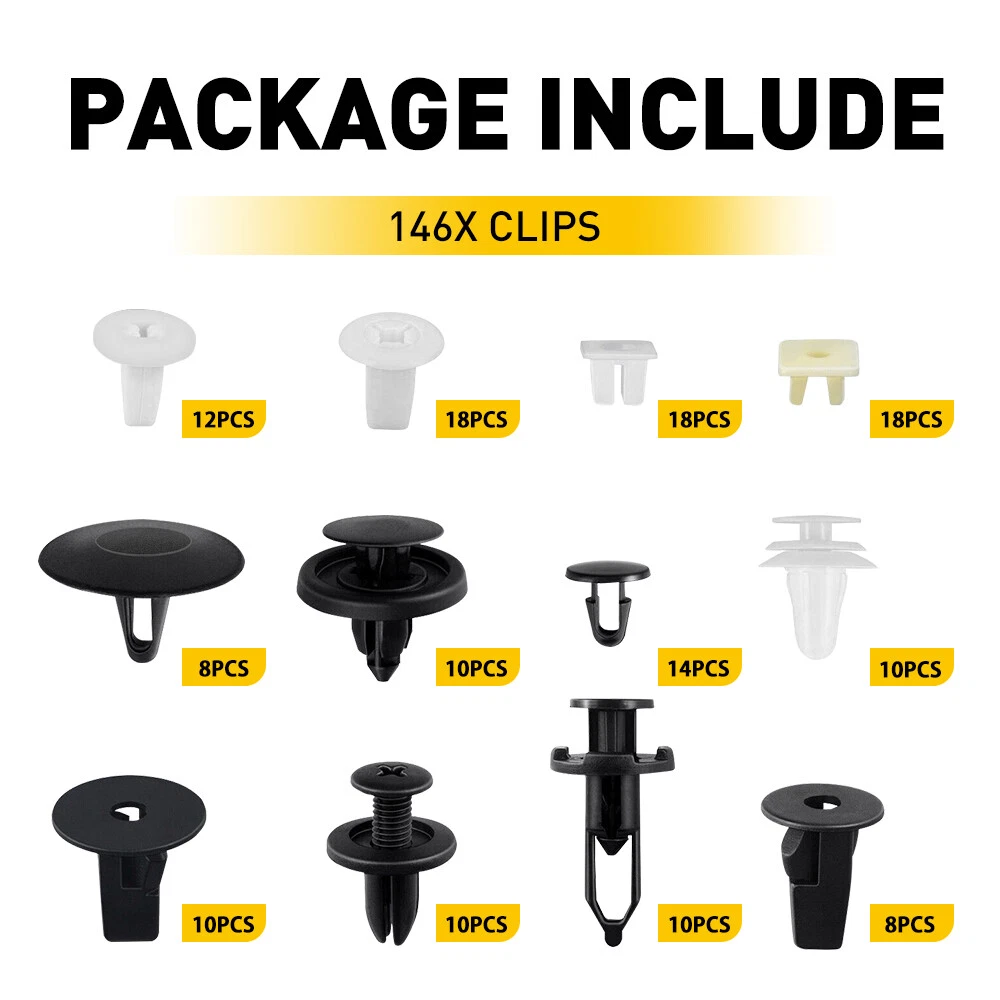 Specification: 10 Pcs Door Trim Panel Retainer White Nylon Top Head Diameter: 13mm Middle Head Diameter: 15.5mm Bottom Head Diameter: 18mm Stem Length: 14mm Overall Length: 20.5mm Stem Diameter: 9.5mm For Isuzu Replaces 8942264920 For Mazda Replaces 9927-40-825 For Toyota Replaces 67771-01010 For Toyota Replaces 67771-12010 For Auveco A14269 18 Pcs Nylon Screw Grommet Natural Nylon #10 Screw Size Width: 13mm Length: 13mm Snaps Into 8.5mm x 8.5mm Hole For Toyota Replaces 90189-06010 For Honda Replaces 75521-611-0000 For Mazda Replaces 9991-00-601 2SET For Toyota Fender Door Hood Bumper Trim Clip Retainer Fastener Assortment Specification: 10 Pcs Door Trim Panel Retainer White Nylon Top Head Diameter: 13mm Middle Head Diameter: 15.5mm Bottom Head Diameter: 18mm Stem Length: 14mm Overall Length: 20.5mm Stem Diameter: 9.5mm For Isuzu Replaces 8942264920 For Mazda Replaces 9927-40-825 For Toyota Replaces 67771-01010 For Toyota Replaces 67771-12010 For Auveco A14269 18 Pcs Nylon Screw Grommet Natural Nylon #10 Screw Size Width: 13mm Length: 13mm Snaps Into 8.5mm x 8.5mm Hole For Toyota Replaces 90189-06010 For Honda Replaces 75521-611-0000 For Mazda Replaces 9991-00-601 Fits For Nissan Replaces 96706-P0105 For Auveco A14274 12 Pcs Screw Type Retainer Material: Black Nylon Head Diameter: 15mm Stem Length: 12mm Fits Into 7mm Hole For Auveco A14260 For GM Replace 20426301 For Mazda Replace 9926-50-625 For Toyota Replace 90467-06017 For Toyota Replace 90467-06017-20 For Toyota Replace 90467-06017-41 18 Pcs Headlight And Grill Nut #10 Screw Size 12mm Wide, 12mm Long Fits into 8mm x 9mm Hole For Toyota Replaces 90189-05013 For Mitsubishi Replaces MS-480002 For Auveco A13932 10 Pcs Fender Liner Retainer Push Type Clip Black Nylon Head Diameter: 20mm (13/16") Stem Length: 8mm (5/16") Fits Hole Size: 7mm (9/32") Fits For Toyota Replaces 90467-07166 For Auveco A18888 12 Pcs #10 Screw Grommet Natural Nylon #10 Screw Size Head Diameter: 18 mm (23/32 inches) Stem Length: 17 mm (21/32 inches) Fits Into 8.5 mm Square Hole Fits For Nissan Replaces 01281-00023 Fits For Toyota Replaces 90189-06001 Fits For Mitsubishi Replaces MB-098145 Fits For Alfa / For Fiat / For Lancia Replaces 14203780 For Auveco A14275 10 Pcs Rear Bumper Cover Clip Push-Type Retainer Black Nylon Head Diameter 18mm (0.71 inch) Stem Length 28mm (1.10 inch) Fits into 9mm Hole (0.35 inch) Fits For Tercel 1988-On Fits For Camry 1988-On Fits For Celica 1996-On Fits For 4 Runner 2003-On Fits For Hi-lux 2003-On Fits For Toyota Replaces 52161-16010 Fits For Toyota Replaces 52161-02020 For Auveco A18873 12 Pcs Screw Grommet With Sealer #6 Screw Size Natural Nylon Head Diameter: 14mm Stem Length: 10mm Fits Into 7mm x 7mm Hole For Honda Replaces 90662-693-0030 For Honda Replaces 90662-693-003 For Toyota Replaces 9018-04066 For Auveco A14281 18 Pcs Trim Panel & Hood Seal Clip Black Nylon Head Diameter: 13mm Stem Length: 11mm Fits Into 5mm Hole For Toyota Replace 90467-08004 For Toyota Replace 90467-08011 For GM Replace 94842841, 94849113 For Geo Prizm 1985-On For Nova 1985-On For Auveco A18297 8 Pcs Front & Rear Wheel Fender Liner Screw Grommet Black Nylon #12 Screw Size Head Diameter: 16mm Stem Length: 19mm Fits Into 9mm x 9mm Hole For Toyota Replaces 90189-06028 For Tacoma, T100 & 4 Runner 1992-On For GM Replaces 94854203 For Chevrolet Nova & Prizm 1985-On For Pontiac Vibe 1985-On For Auveco A19194 8 Pcs Hood Insulation Retaining Clip Hood Pad Insulation, Package Tray Panel, Luggage Compartment Mat Black Nylon Head Diameter: 30mm Stem Length: 17mm Fits 7mm Hole Panel Thickness: 6mm Fits For MR2 1989-On For GM Nova 1985-On For Toyota Replaces 90467-09008 For Auveco A14738 10 Pcs Screw Grommet Black Nylon 1/4" (#14) or M6.3-1.81 Screw Size Head Diameter: 20mm Stem Length: 17mm Fits Into 8mm x 8mm Hole For Toyota Replaces 90189-06013 For Toyota Replaces 96706-W100 For Auveco A14267 Features: *Superior material Adopt to excellent metal and plastic materials to prevent it from corrosion and cracking. *Easy installation Simple installation with direct replacement, other modification is not required. *Please Note: Communication is the best way to solve the problem. If you have any problems after purchasing, please contact us via eBay Message, before return. *Usage They can be used for Hood, Bumper, Fender Liner Retainer, Rear Bumper Cover Clip Push-Type Retainer, Screw Type Retainer, Door Trim Panel Retainer, Trim Panel & Hood Seal Clip, Nylon Screw Grommet replacement. It fits for Auto Car SUV Off-Road Pickup Truck. Package Included: 10 Pcs Door Trim Panel Retainer 18 Pcs Nylon Screw Grommet 12 Pcs Screw Type Retainer 18 Pcs Headlight And Grill Nut 10 Pcs Hood, Bumper, Fender 12 Pcs #10 Screw Grommet 10 Pcs Rear Bumper Cover Clip 12 Pcs Screw Grommet With Sealer 18 Pcs Trim Panel & Hood Seal Clip 8 Pcs Front & Rear Wheel 8 Pcs Hood Insulation Retaining Clip 10 Pcs Screw Grommet Item Specifics Brand Unbranded Type Clips Color Black,White Placement on Vehicle Left, Right, Front, Rear, Upper, Lower Features Easy Installation Material Plastic Universal Fitment No Manufacturer Warranty 1 Year Fitment Type Direct Replacement Package Include 146pcs Clips Application 1 Screw Fender Body Door Trim Panel Hood Application 2 Under Engine Splash Guard Rivet Fastener Clips Application 3 Universal For Auto Car SUV Off-Road Pickup Truck Application 4 146Pcs Car Push Pin Rivet Trim Clip Assortment Kit FAQ ♥ If you have a decoding problem or any other problems, please contact us first, we will help you with it. We will reply you within 24 hours in working days. I'm a new seller, thanks a lot for your trust and convince! I will serve you with all my heart. ♥ Q1: Will this bulb fit my vehicle? A: We can match almost any vehicle to one of our bulb sizes. eBay only lets us include some vehicle fitments per listing, but if your vehicle does not show up on the compatibility table at the top of our listings, welcome you to contact us for free consulation before purchasing a p