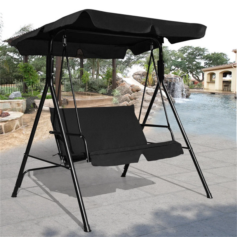Highlights ● Stable and Durable: Patio swing is made of steel frame, which ensures large weight capacity(approx: 390lbs) and sturdy construction. Powder-coated finish and polyester fabric provides-lasting enjoyment for years to come. ● Waterproof and UV: Polyester and oxford cloth is waterproof and powder-coated finish is rust-resistant. You can leave the swing outdoors after late-night barbeques and gatherings. In sunny days canopy will you from sun’s harmful UV rays. ● Adjustable canopy: The angle of canopy can be adjusted from 0-45 degree to adapt to sunlight in different directions. With such adjustable canopy provides better cool shade. If you are in the mood for sunbathing, remove it. ● Soft cushions and Feet pads: Soft cushions with 2-person seating is perfect for socializing with friends or enjoying summertime with family. The patio swing constructs plastic anti-skid feet pads. It makes the patio swing more safe in rainy days and also prevent floor from scratching. ● Nice and Versatile Swing: This elegant and nice can be a great eye-catcher for multiple. It can blend with the surrounding environment well. You can also simply put it in your patio, yard, poolside to have a joyful outdoor leisure. Specifications Color: Black Material:Steel pipe + polyester cloth + oxford cloth Overall dimension:55.0" x 43.5" x 60.5" (L x W x H) Size of top canopy:53.0" x 45.5" (L x W) Size of seat:41" x 18.5" (L x W) Size of back:41" x 18.5" (L x W) Distance from seat to floor:19.5" Distance from floor to armrest:23.5" Weight capacity:390 lbs Product weight:32 lbs