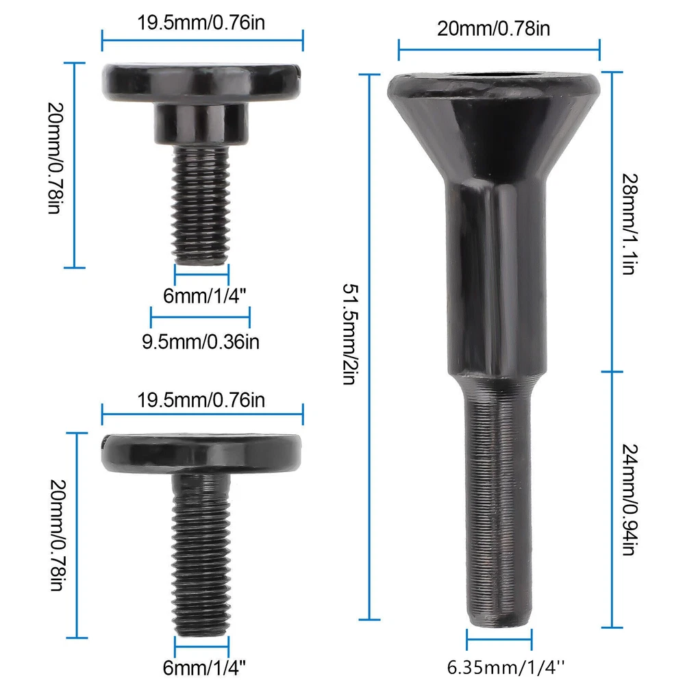 Product Description Features: Material: Crafted from durable carbon steel with a black plated finish, the cut-off wheel arbor offers long-lasting performance and excellent rust resistance for extended use. Two Thread Heads: The die grinder's mounting mandrel features a handle with two different thread head types. It's designed for attaching small-diameter cut-off wheels or circular saw blades with 3/8-inch or 1/4-inch core holes, suitable for cutting discs from 0.035 to 0.16 inches thick. Versatile Application: This mandrel also supports various grinding wheels, including grinding, sanding, cleaning, descaling, polishing wheels, and hss saw blades, making it suitable for a wide range of tasks. Wide Compatibility: With a 1/4-inch (6.35mm) shank, it fits most die grinders and drill rotary tools. Easy to install and remove, making it an essential grinder accessory. Specifications: Type: Metal Cut Off Wheel Disc Mandrel Material: Carbon Steel Shank Diameter: 1/4” Package includes: 2 x Mounting Mandrel 4 x Screws Shipping Returns Contact Us Payment 1. Items sent from US warehouse. 2. Receiving time = Processing time + Shipping time. 3. Processing Time: Around 1-2 business Days. 4. Shipping Time: 3-5 business day. It may have a little delay during some holiday (such as Christmas), any problem, please feel free to contact. Always believe we can figure things out with communication, if it comes to return, the pacakge must be intact and the same as you receive. If you have any questions, please feel free to email our service specialists 24 Hours a Day, 7 Days a Week. We will reply you ASAP. Return/refund is accepted within 30 days after the buyer receives the item. NO exchange will be accepted after 30 days from the date when the item is received. Please contact us first before returning your product!!! If you have any questions, our Customer Service staffs welcome you to email us. We strive to answer all questions and resolve any problems as quickly as possible. We care about our valued customers, and will always try to help you. So if you have any problems, You can contact us 7*24, we will reply at the first time. We accept all verified payments from ebay. Orders will be shipped after receiving cleared payment. Shipping 1. Items sent from US warehouse. 2. Receiving time = Processing time + Shipping time. 3. Processing Time: Around 1-2 business Days. 4. Shipping Time: 3-5 business day. It may have a little delay during some holiday (such as Christmas), any problem, please feel free to contact. Returns Always believe we can figure things out with communication, if it comes to return, the pacakge must be intact and the same as you receive. If you have any questions, please feel free to email our service specialists 24 Hours a Day, 7 Days a Week. We will reply you ASAP. Return/refund is accepted within 30 days after the buyer receives the item. NO exchange will be accepted after 30 days from the date when the item is received. Please contact us first before returning your product!!! Contact Us If you have any questions, our Customer Service staffs welcome you to email us. We strive to answer all questions and resolve any problems as quickly as possible. We care about our valued customers, and will always try to help you. So if you have any problems, You can contact us 7*24, we will reply at the first time. Payment We accept all verified payments from ebay. Orders will be shipped after receiving cleared payment. Blue DIY Power Bank Box 5*21700 Battery Charger Case PD22.5W Fast Charging Box I 15.19 USD 15.99 USD 19.99 USD 5% off Black Rear Suspension Travel Limit Straps for Traxxas 1/7 UDR RC Car 125-200mm I 14.91 USD 15.69 USD 19.99 USD 5% off New Black Metal Wheelie Bar Upgraded Parts For ARRMA 1/18 Granite Grom RC Car I 16.14 USD 16.99 USD 19.99 USD 5% off Watch Parts Storage Tray Organizer Dryer Plate Frame Steel Mesh Cleaning Tool b 11.39 USD 11.99 USD 19.99 USD 5% off DB26 Female Adapter To PCB Terminal Signal Module Board Connector 26Pin x 13.96 USD 14.69 USD 19.99 USD 5% off Professional Waterproof Case Box Special Sealed for RC Car Boat Model Receiver 11.77 USD 12.39 USD 19.99 USD 5% off 5V2A BT 5.3 CD Player HIFI Loudspeaker CD/CD-R/CD-RW/MP3/WAV Widely Applications 54.14 USD 56.99 USD 19.99 USD 5% off 1/4" Shoulder Strap Connection Buckle Fixing Screw Adapter Camera Quick Sling B 9.49 USD 9.99 USD 19.99 USD 5% off Replacement Back Rear Camera Tempered Glass Lens Cover For Galaxy S10 SM-G973 v 8.54 USD 8.99 USD 19.99 USD 5% off 20Pack Outdoor Emergency Camping Tent Awning Tarp Clamp Gripper Fixed Clip f 9.87 USD 10.39 USD 19.99 USD 5% off USB Mouse Cable For Logitech MX518 MX510 MX500 MX310 G1 G3 G400 G400S Mouse 10.16 USD 10.69 USD 19.99 USD 5% off Plastic SATA to PATA IDE Hard Drive Adapter IDE Serial Port To Parallel Port C 13.29 USD 13.99 USD 19.99 USD 5% off Camera Lens Accessories Adjustable ND6-9 Lens For DJI Osmo Pocket 3 Camera I 20.89 USD 21.99 USD 19.99 USD 5% off 40X Tobacco Pipe Mouthpiece Bit Rubber Cover Smoking Pipes Protective Sleeves E 10.99 USD 19.99 USD 1/4'' Shank Compression Cutter Router Bit Solid Carbide Flush Trim Bit I 22.99 USD 19.99 USD USB Charging Data Cable Replacement Line for Logitech G PRO Wireless Mouse 10.16 USD 10.69 USD 19.99 USD 5% off Watch Escape Wheel Repair Kit Tool for MIYOTA 8200 8215 8205 Watch Movement 9.87 USD 10.39 USD 19.99 USD 5% off High Quality Earphone Cable 1.8m 3.5mm Male For DELL ALIENWARE AW920H 13.86 USD 14.59 USD 19.99 USD 5% off Various Sizes Stainless Steel Hexagonal Screws Box For Arrma 1/18 Granite Grom 14.43 USD 15.19 USD 19.99 USD 5% off 1000Mbps Gigabit Ethernet Splitter Adapter RJ45 LAN Network Internet 1 to 4 Port 16.81 USD 17.69 USD 19.99 USD 5% off 1PC Headphones Soft Headband Pad Replace For Bose QC35 QC35II QC45 QC SE 12.63 USD 13.29 USD 19.99 USD 5% off New Rich oil Coffee Capsule Adapter for Nespresso Reusable G-Cup for Vertuo 22.6 USD 23.79 USD 19.99 USD 5% off Audio Earphone Cable For Sennheiser Game ZERO ONE PC3