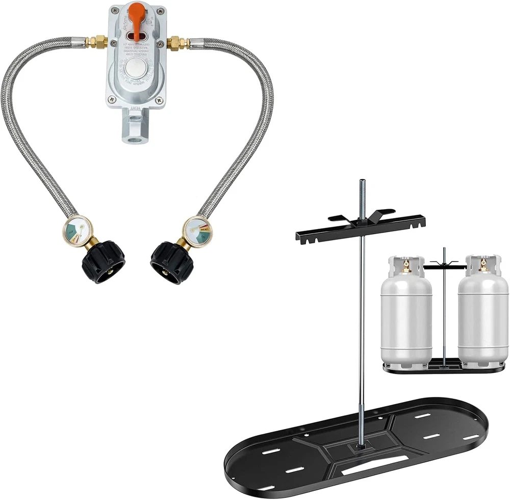 Store New Arrivals Add to Favorite View Feedback Contact 2-Stage Auto Changeover Propane Gas Rv Regulator Kit with 2PCS Gauges and Dual Propane Tank Mounting Rack for 30 Lbs Tanks Description Auto Changeover - The dual propane tank connection kit features an automatic changeover system that connects two propane tanks and switches between them when one runs out, avoid sudden loss of gas supply, saving you time from switching propane tanks. Propane Tank Gauge Level Indicator - The rv propane connection hose set comes with two color coded dials, which helps you to monitor the fuel level at a glance without necessarily removing the tank. Universal Standard Specifications - The inlets of this rv propane hose with QCC1 1/4" SAE inverted flare and the outlet is a 3/8" NPT female thread, and comes with 2 of the 12" connect hoses, two propane tank gauges. BTU: 190,000 BTU/h. Enhanced Safety - A dual propane tank mounting rack can securely hold two 30lb propane tanks in place. The hold-down bar has properly spaced deep notches to grip and clamp the cylinder collar guard, reducing the risk of propane tanks shifting or falling during transport. Widely Use - The propane regulator with hoses is easy to install to your dual tank rv trailer, and it is also perfect for a wide range of applications such as RVs, trailers, generators, patios, lawns, and gardens, making it a versatile and convenient solution. Skyflame 2-Stage Auto Changeover Propane Gas Rv Regulator Kit with 2PCS Gauges and 12-Inch Braided Connection Hoses for Dual Propane Tank RV Trailers Camper Skyflame Steel RV Dual Propane Tank Mounting Rack for 30 lbs Tanks, Double Gas Tank Cylinder Hitch Frame for RVs, Camping and Trailers ABOUT US We offer the best prices around on high quality products. Our E-store includes media such as books, movies, music and games while offering electronics, toys, sporting apparel, clothing, tools, general home, garden items and more. SHIPPING We are always working hard to ensure your package arrives as soon as possible. Please understand that some factors like weather, high postal traffic, and the performance of shipping companies are outside of our control. We offer free shipping to the lower 48 states and ship within 2 business days of payment, usually sooner. We do not accept P.O. Boxes. Please provide a physical address. For shipping outside of the continental USA, we only use eBay's Global Shipping Program.The item is shipped to KY and then sent to the rest of the world. International customers are responsible for all duties and taxes. Continue to check out in order to calculate costs for shipping the item to your country. Messages regarding eBay's Global Shipping Program MUST be directed at eBay EXCLUSIVELY. RETURNS We offer a 30-Day Return Policy on items which you are not completely satisfied with. You have the option for a full-refund or an exchange of the item. No returns are available on items shipped outside of the USA. PAYMENT We accept PayPal. CONTACT US This page content is yet to come Please ad us to your favorite seller and visit again later Thank You CUSTOMER SATISFACTION We try our very best to make sure every customer is completely satisfied. If there's a problem, message us! We're happy to help. WE ACCEPT Copyright © 2021 AutoDS. | All Rights Reserved