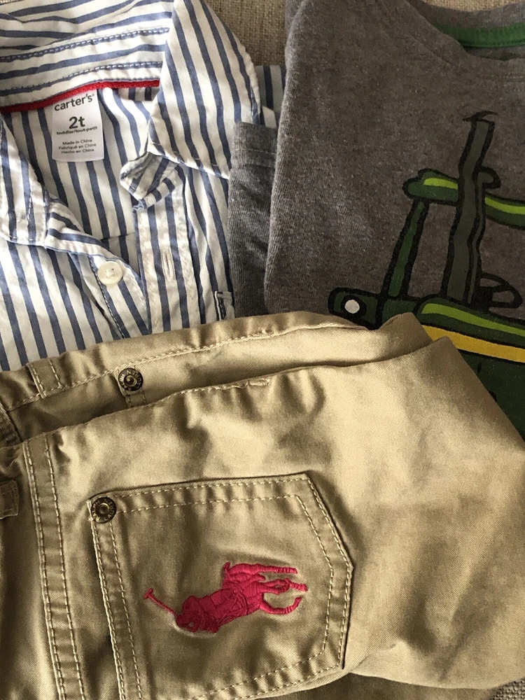 Dress your little one for comfort and style with this versatile 2T boys' items. The collection features a striped dress shirt paired with a playful John Deere tractor tee, both in sizes that cater to toddlers. The ensemble is completed with Polo pants, designed for a regular fit and ideal for casual wear.