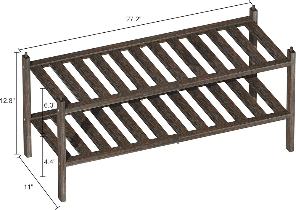 【High-Quality Bamboo Materials】 We choose bamboo grown in a natural alpine region. The texture is hard, the structure is firm, and the service life is long. After high temperature carbonization, the product is waterproof and not easy to crack and deform. 【Strong and Sturdy Quality】 strong load-bearing, stable and durable, each layer of the Shoe Rack can bear the weight of 40LB. After the thickening of the laminate and the bracket, the full solid bamboo board makes the product more solid and stable. 【Wide Range of Uses】This Shoe Rack keeps your shoes organized. In addition, its unique design style makes it suitable for most scenes. It can be used as a bookshelf or flower rack in the living room or bedroom, and it can also be used to put towels and toiletries in the bathroom. You can also place dishes and sundries in the kitchen cabinet if you want. 【Stackable Design】 The perfect tenon joint design allows no tools to be stacked. The shoe rack is connected by embedding a groove between the upper and lower frames. You can buy two racks to stack a 4-tier shoe rack, or to create more units to house all your things.