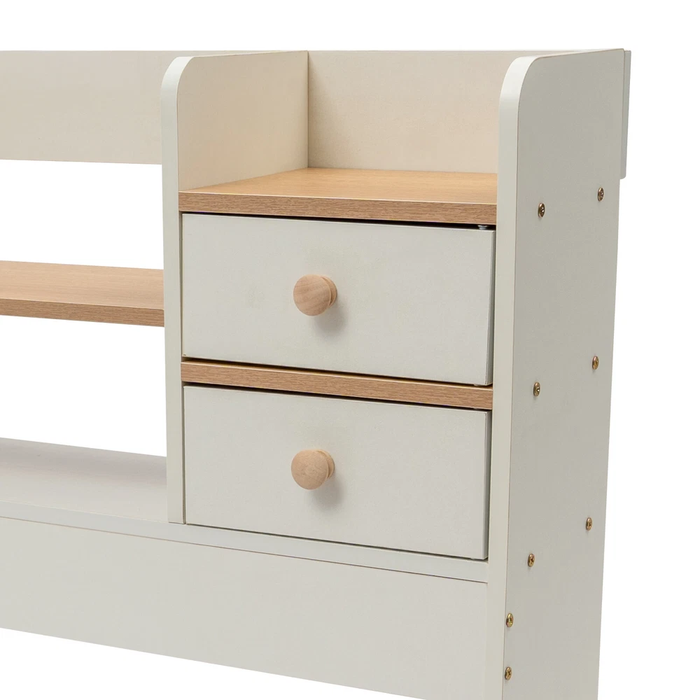 2 Tiers Desktop Bookshelf Office Dorm Desk Organiser Storage Shelf Display Rack Specifications Material: MDF, Plywood Board Process: Veneer Style: Modern Color: White Mount Type: Tabletop Mount Assembly Required: Yes Number of Tiers: 2 Number of Drawers: 2 Thickness: 2mm/0.08in Load Capacity: About 10kg/22.05lbs Product Size: 92*18*78cm/36*7*30.7in Package Size: 85*20*13cm/33.46*7.87*5.12in Gross Weight: 5.7kg/12.57lbs Net Weight: 5kg/11.02lbs Package Included 1*Desktop Bookshelf 1*Chinese Installation Diagram All Accessories for Installation Description This desktop bookshelf is thoughtfully designed and powerful. Both practicality and artistic beauty are taken into account. The layout of each layer is just right, which is convenient to take and ensures a good display of books, revealing an efficient but not losing warm working atmosphere. Working in such an environment, every time you raise your eyes, you can feel the cultivation of culture and the call of knowledge, which invariably inspires you to keep learning and making progress. Key Features Build to Last : High-quality MDF, plywood board(2mm) with a veneer process makes this product hard, environmentally friendly , and not easy to rust, so it can be used for a long time. Suitable Bearing Capacity: High-quality materials, strong screw fixation, and a sturdy frame make this product withstand 22.05 lbs, thus providing greater security for your book storage and collection. Ample Storage Space: The desktop bookshelf has 5 open compartments and 2 drawers for a total of 7 individual storage spaces, great for books, office stationery, files, small potted plants, and other items. Thoughtful Design: The top baffle is designed to prevent items from slipping out, the drawer doors with handles are easy for you to open and close, and the large bottom compartment provides you with plenty of workspace while keeping the items you need within reach. Space-saving : The desktop-mounted design can effectively utilize tabletop space without taking up floor space, helping you plan your room and save space. Exquisite Gift : This functional and aesthetically pleasing product is an ideal gift for Christmas, birthdays, or housewarming for your friends, family, and colleagues. Convenient to Install : Multiple reinforcement screws, pre-drilled holes, and complete accessories allow you to complete the installation and start using it in a short period. Effortless Cleaning: With its open construction and smooth surface, you can simply wipe off surface dust with a damp rag (not included) Good Customer Service: We stand behind all our guests and look forward to assisting you with your purchase. It is our pleasure to answer your confusion and questions. The end of the story between us is not "we sell and you buy". Details Open Storage Compartment : It makes it possible to display your books and other collectibles, and it's also easy to grab and go. Widened Depth: It allows you to place larger sized books or other objects without looking cramped. Smooth Edges : The smooth, round, and burr-free edges make it safer for you to install and clean the product. Application It is suitable for study rooms, offices, bedrooms, libraries, reading rooms, schools, classrooms, and living rooms to organize books, office supplies, stationery, files, collectibles, and other items. Notes We recommend that it be installed by two people. This product does not include books and other decorations. Please allow the slight color difference caused by the shooting light and 1-3cm error due to manual measurement, and make sure you do not mind before you order. Payment Delivery details Terms of sales About us Contact us Payment We accept ebay payment 。 Fees such as import duties, taxes are not included in the item price or shipping costs. These charges are the buyer's responsibility. Delivery details Shipping: 2-9 working days to: USA Terms of sales We maintain high standards of excellence and strive for hundred percent customer satisfaction. Feedback is very important to us. We hope that you contact us immediately before you give neutral or negative feedback, so that we can address your concerns. It is impossible to address issues if we do not know about them! About us Your satis faction is our ultimate goal. We work hard to earn your trust and future business. Our certified technicians have tested each item before shipping. The unit comes with 1 year limited warranty on all manufacturing defects. a) If you receive a defective item, you may return it or ask for a discount. Please contact us within 14 days after you receive the package. b) What you returned must be intact and in its original packaging as re? u. Customer is responsible for shipping costs of the returned item. c) We will cover the cost of shipping back t with the shipping rate indicated in the registration page. We will send you a new unit or refund the full payment you paid. Thank you. Contact us Business Hour Business Hour: Monday To Friday: 8:30 AM to 5:00 PM (Beijing China time) Due to time zones, our reply to your questions may not be immediately. But within above working time, we will reply your email within 24 hours. If it's non-workdays, please kindly be patient and wait till Monday. Please contact us with ebay message. Please feel free to contact us if you have any questions. Monday To Friday: 8:30 AM to 5:00 PM (Beijing China time) Due to time zones, our reply to your questions may not be immediately. But within above working time, we will reply your email within 24 hours. If it's non-workdays, please kindly be patient and wait till Monday. Please contact us with ebay message. Please feel free to contact us if you have any questions. On Feb 5, 2025 at 18:53:31 PST, seller added the following information: